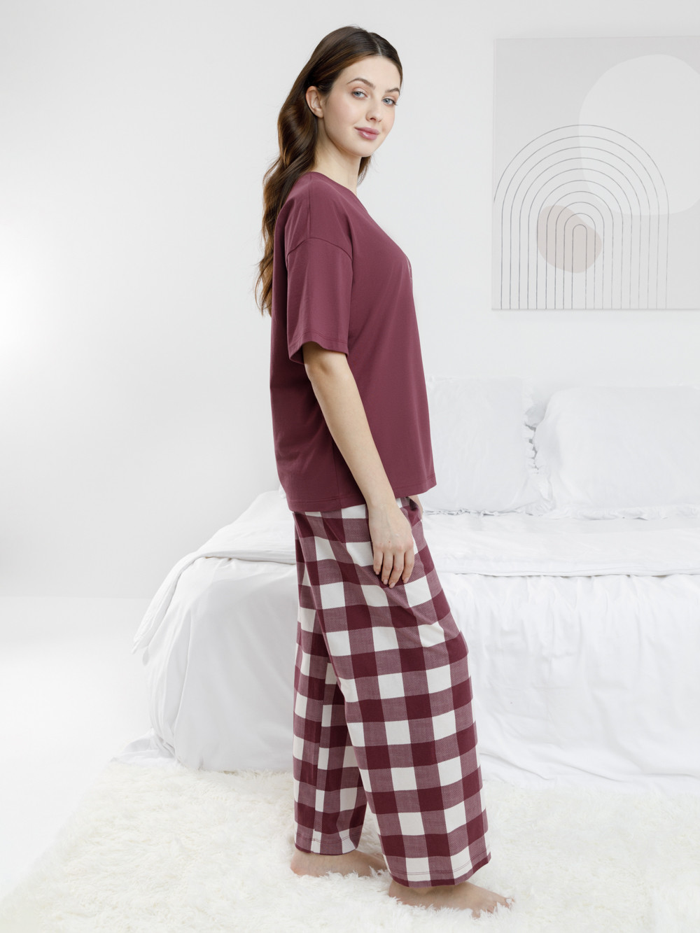 Комплект для комфортного сна и отдыха из гладкого трикотажного полотна. Футболка с короткими спущенными рукавами и прямые брюки с мягкой эластичной резинкой в поясе, которые удобно садятся по фигуре. Лёгкий материал приятен к телу, не теряет форму и позволяет коже дышать. Все трикотажные полотна производятся в соответствии с нормами швейцарского сертификата ЭкоТекс.