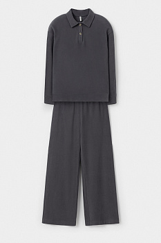 Комплект из 100% хлопка. Специальная обработка полотна пич эффектом придает мягкость, бархатистость и легкий ворс, а брюки без боковых швов и широкие рукава обеспечивают легкость и свободу движений.