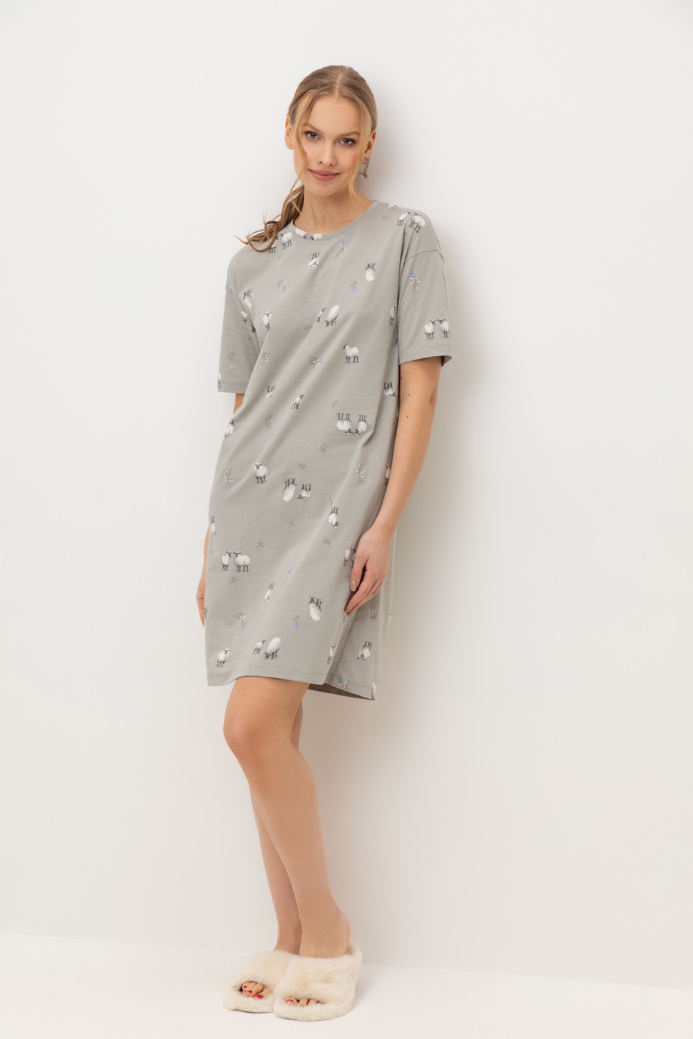 Комфортная сорочка выполнена из  высококачественного 100% хлопка. Свободный крой добавляет комфорт для домашнего отдыха