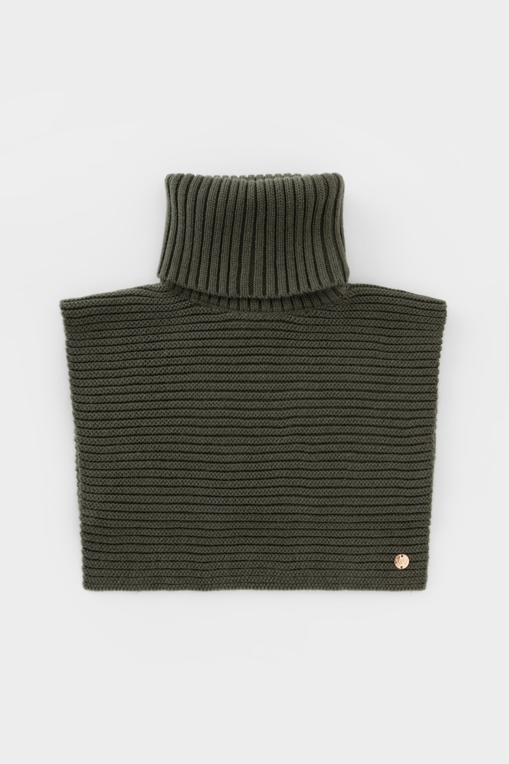 Уютная вязаная манишка с высоким воротником из шерсти и акрила. Шерсть в составе хорошо удерживает тепло, а волокна акрила делают изделие мягким и предотвращают деформацию и появление катышек. Лаконичный крой хорошо сочетается с верхней одеждой.
