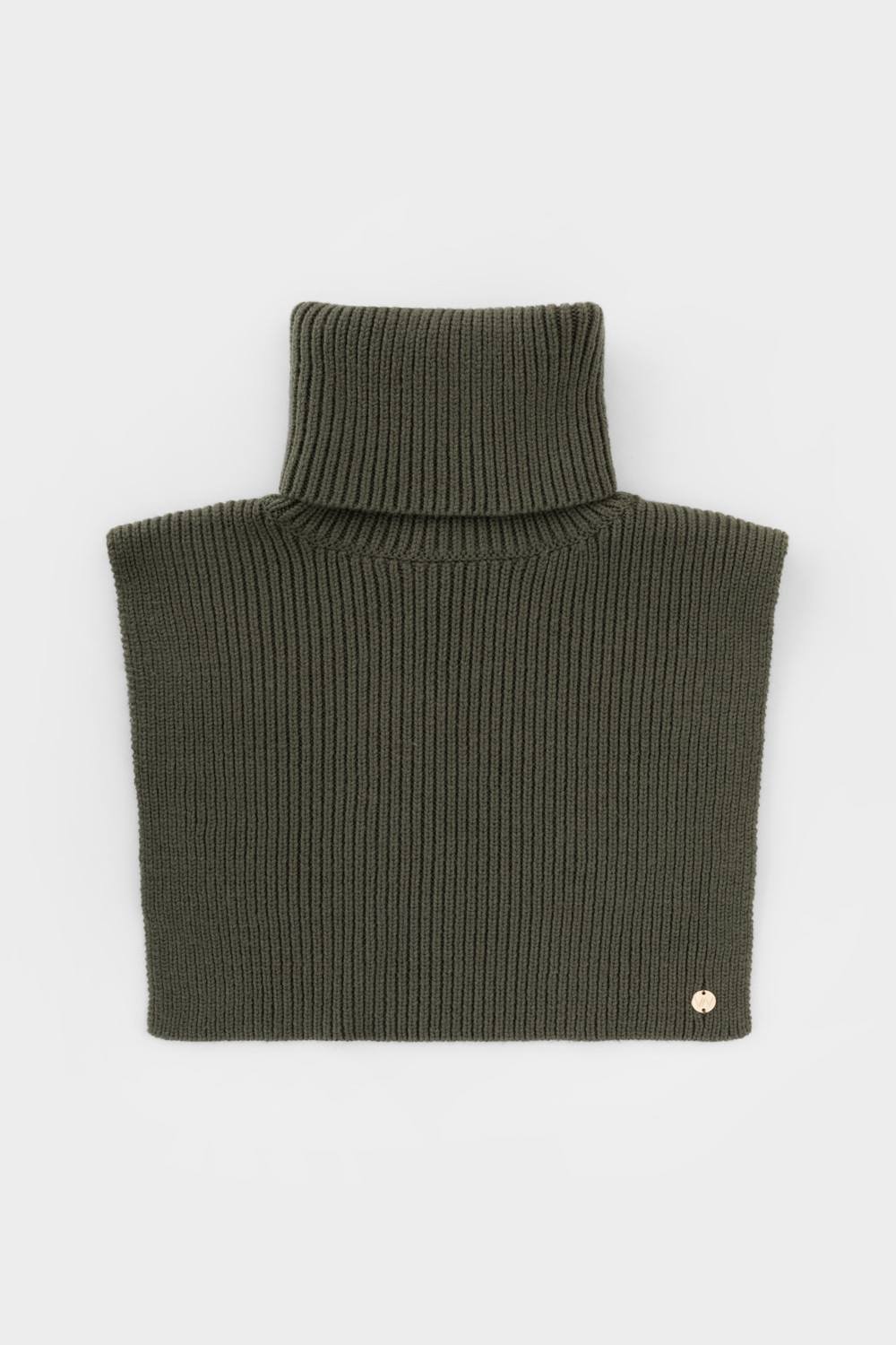 Уютная вязаная манишка с высоким воротником из шерсти и акрила. Шерсть в составе хорошо удерживает тепло, а волокна акрила делают изделие мягким и предотвращают деформацию и появление катышек. Лаконичный крой хорошо сочетается с верхней одеждой.