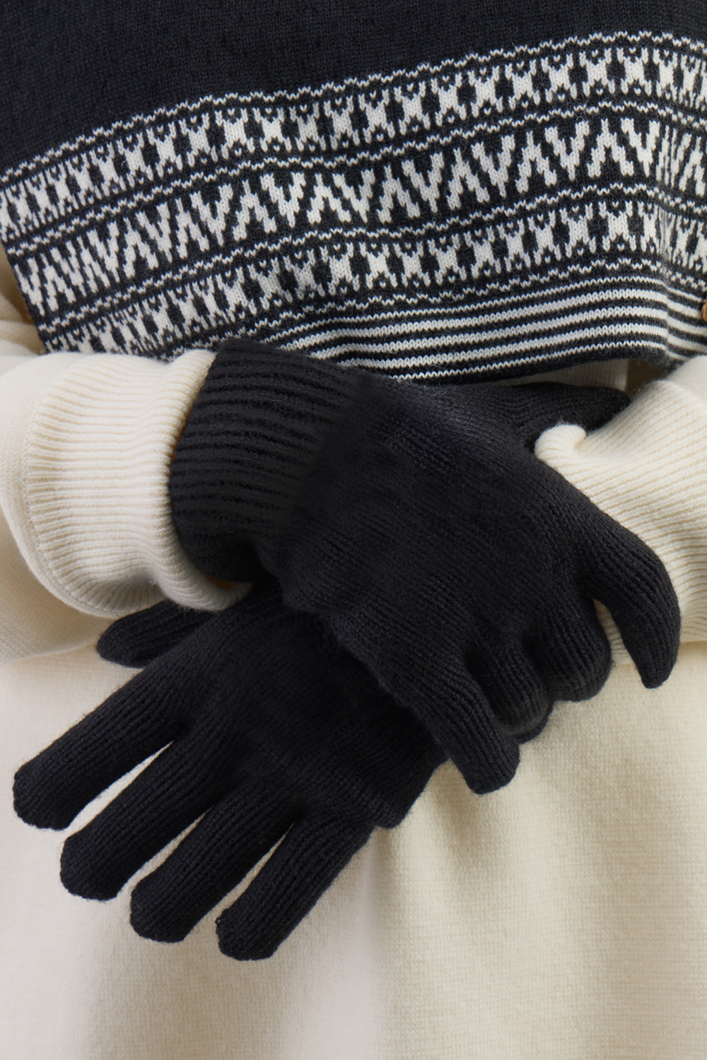 Тёплые вязаные перчатки с короткими эластичными манжетами из шерсти и акрила. Шерсть в составе хорошо удерживает тепло, а волокна акрила делают изделие мягким.