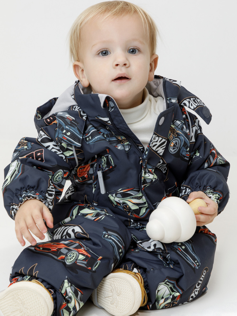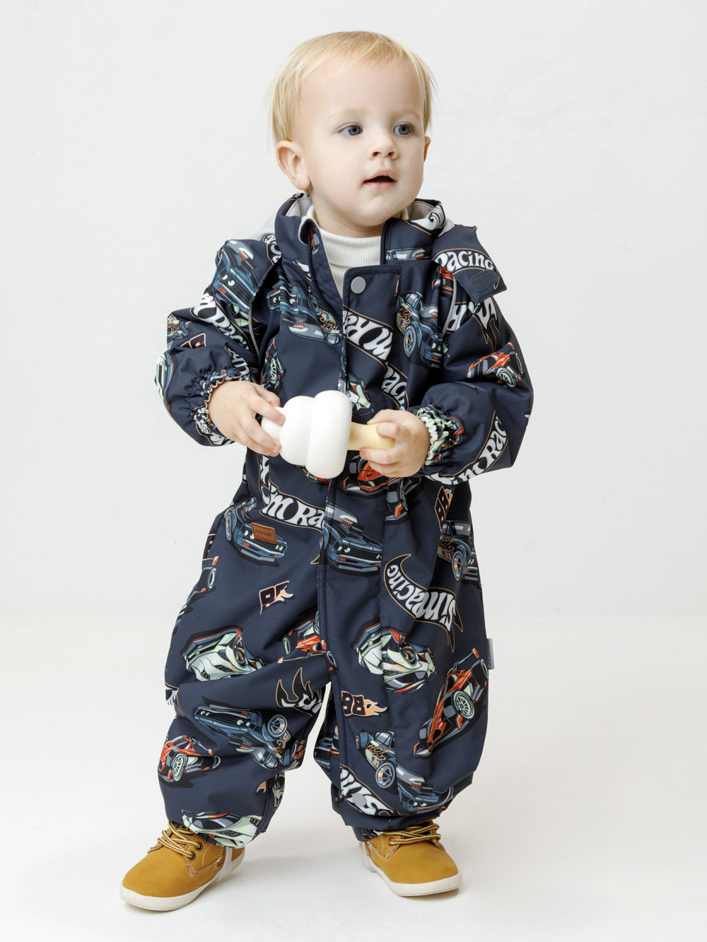 Демисезонный комбинезон ясельный с утеплителем SEE, 120 г/м2. Выполнен из мембранной ткани с дополнительной тефлоновой обработкой. Данный вид обработки предохраняет изделие от загрязнения и лучше отводит влагу. Подклад из 100% хлопка. Для удобного одевания комбинезон застёгивается на удлинённую молнию с защитой подбородка. Ветрозащитная планка фиксируется на липучках и кнопках. Утяжка на капюшоне с потайным стоппером. По низу рукавов и брючин, а также на спинке изделия предусмотрены эластичные резинки для лучшего прилегания. Для фиксации комбинезона используются съёмные силиконовые штрипки. В размере 74-80 есть функциональные отвороты на рукавах и брючинах. Во всех изделиях верхнего ассортимента для безопасности ребёнка предусмотрены светоотражающие элементы.
