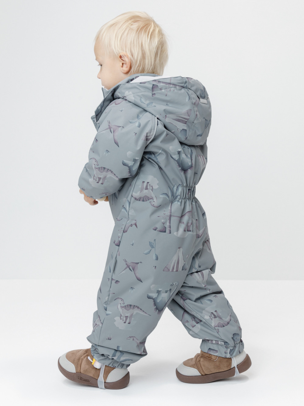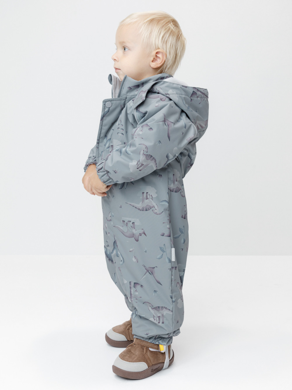 Демисезонный комбинезон ясельный с утеплителем Fellex®, 120 г/м2. Выполнен из мембранной ткани с дополнительной тефлоновой обработкой. Данный вид обработки предохраняет изделие от загрязнения и лучше отводит влагу. Подклад из 100% хлопка. Для удобного одевания комбинезон застёгивается на удлинённую молнию с защитой подбородка. Ветрозащитная планка фиксируется на липучках и кнопках. Утяжка на капюшоне с потайным стоппером. По низу рукавов и брючин, а также на спинке изделия предусмотрены эластичные резинки для лучшего прилегания. Для фиксации комбинезона используются съёмные силиконовые штрипки. В размере 74-80 есть функциональные отвороты на рукавах и брючинах. Во всех изделиях верхнего ассортимента для безопасности ребёнка предусмотрены светоотражающие элементы.