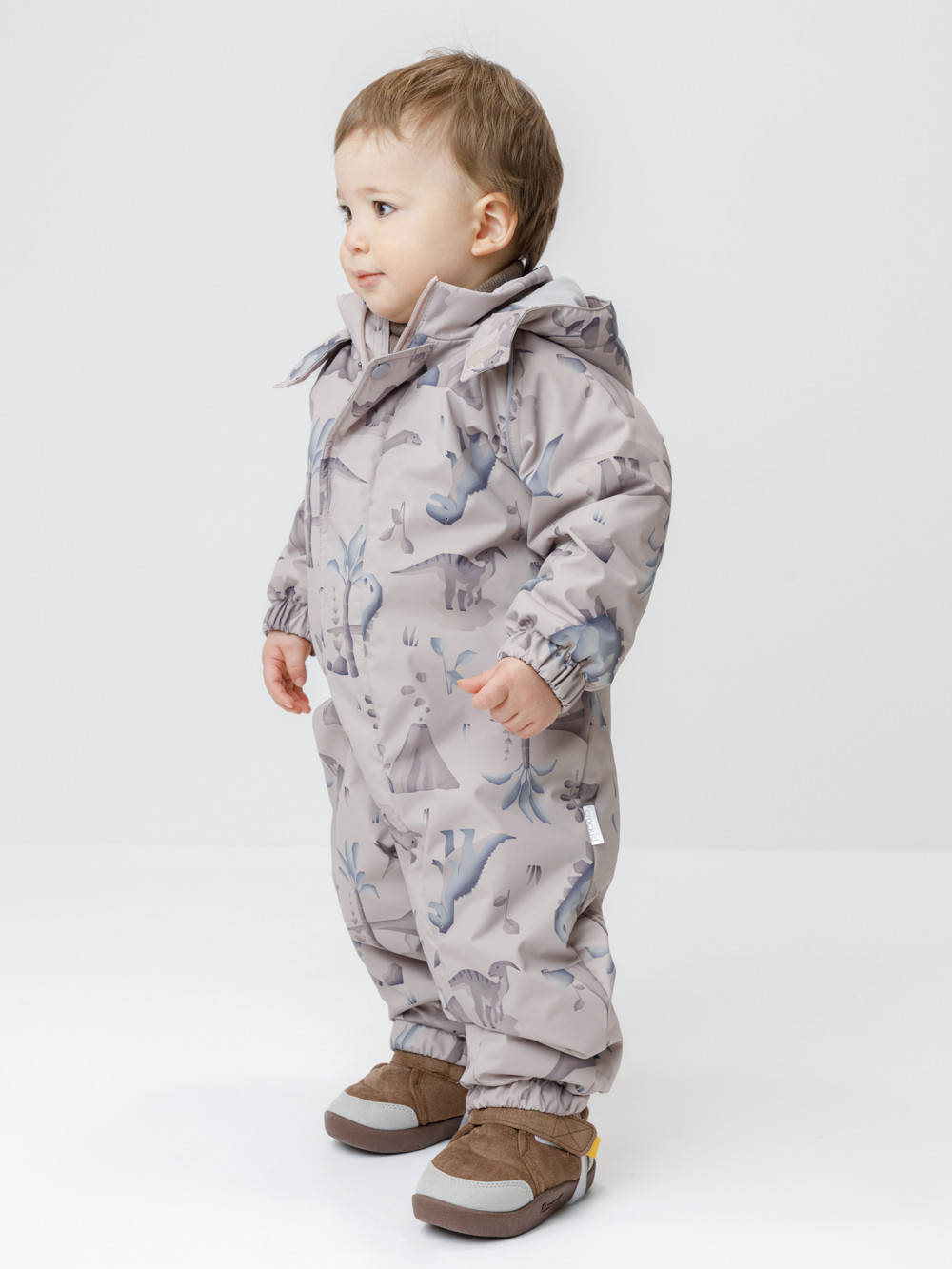 Демисезонный комбинезон ясельный с утеплителем Fellex®, 120 г/м2. Выполнен из мембранной ткани с дополнительной тефлоновой обработкой. Данный вид обработки предохраняет изделие от загрязнения и лучше отводит влагу. Подклад из 100% хлопка. Для удобного одевания комбинезон застёгивается на удлинённую молнию с защитой подбородка. Ветрозащитная планка фиксируется на липучках и кнопках. Утяжка на капюшоне с потайным стоппером. По низу рукавов и брючин, а также на спинке изделия предусмотрены эластичные резинки для лучшего прилегания. Для фиксации комбинезона используются съёмные силиконовые штрипки. В размере 74-80 есть функциональные отвороты на рукавах и брючинах. Во всех изделиях верхнего ассортимента для безопасности ребёнка предусмотрены светоотражающие элементы.