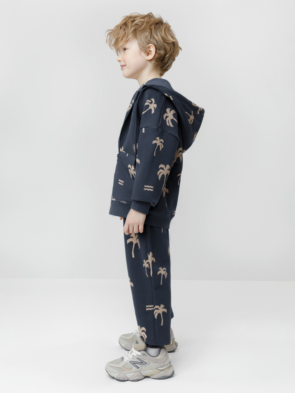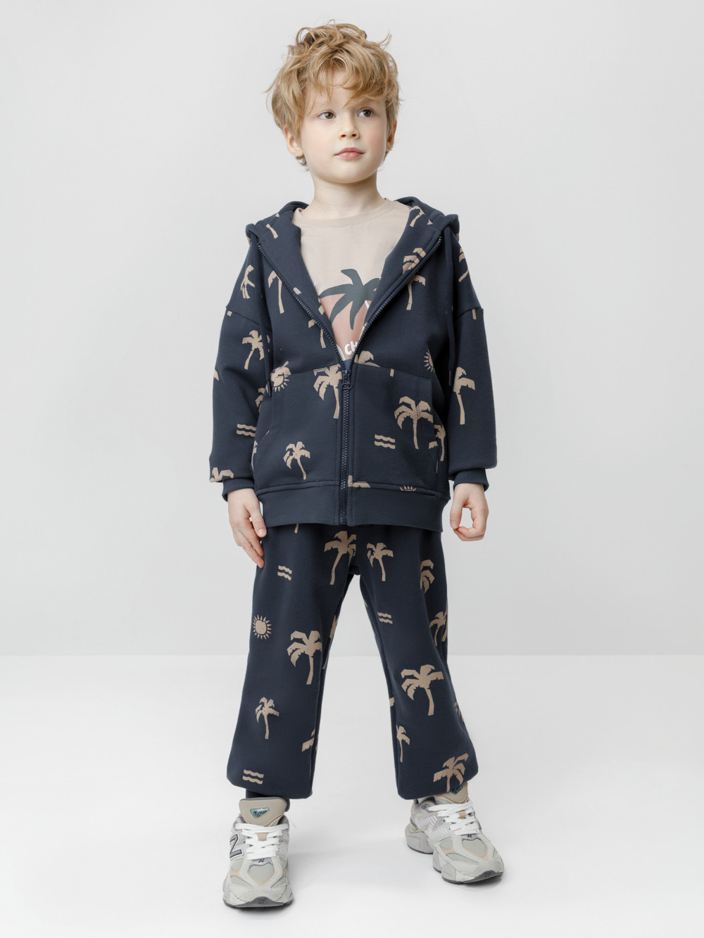 Брюки для мальчика из высококачественного трикотажного полотна. Пояс регулируется по ширине при помощи шнурка. Низ на манжетах. Оригинальная набивка выполнена из стойких текстильных гипоаллергенных красителей. Изделие сохраняет цвет и форму после многократных стирок. Все трикотажные полотна производятся в соответствии с нормами швейцарского сертификата ЭкоТекс.