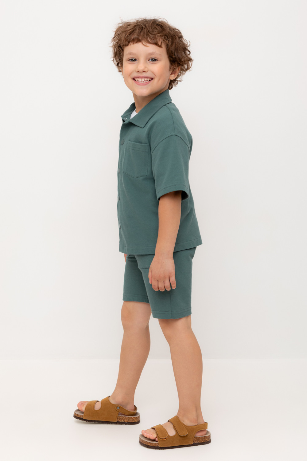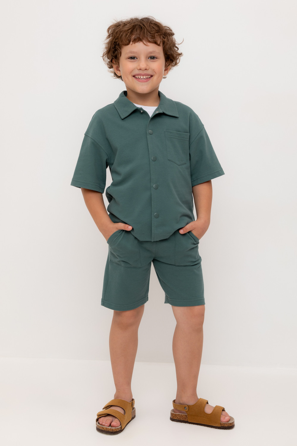 Трикотажные шорты для мальчика из высококачественного хлопкового трикотажа пике. Эластичный пояс на резинке регулируется по ширине с помощью шнура. По бокам два удобных  кармана.