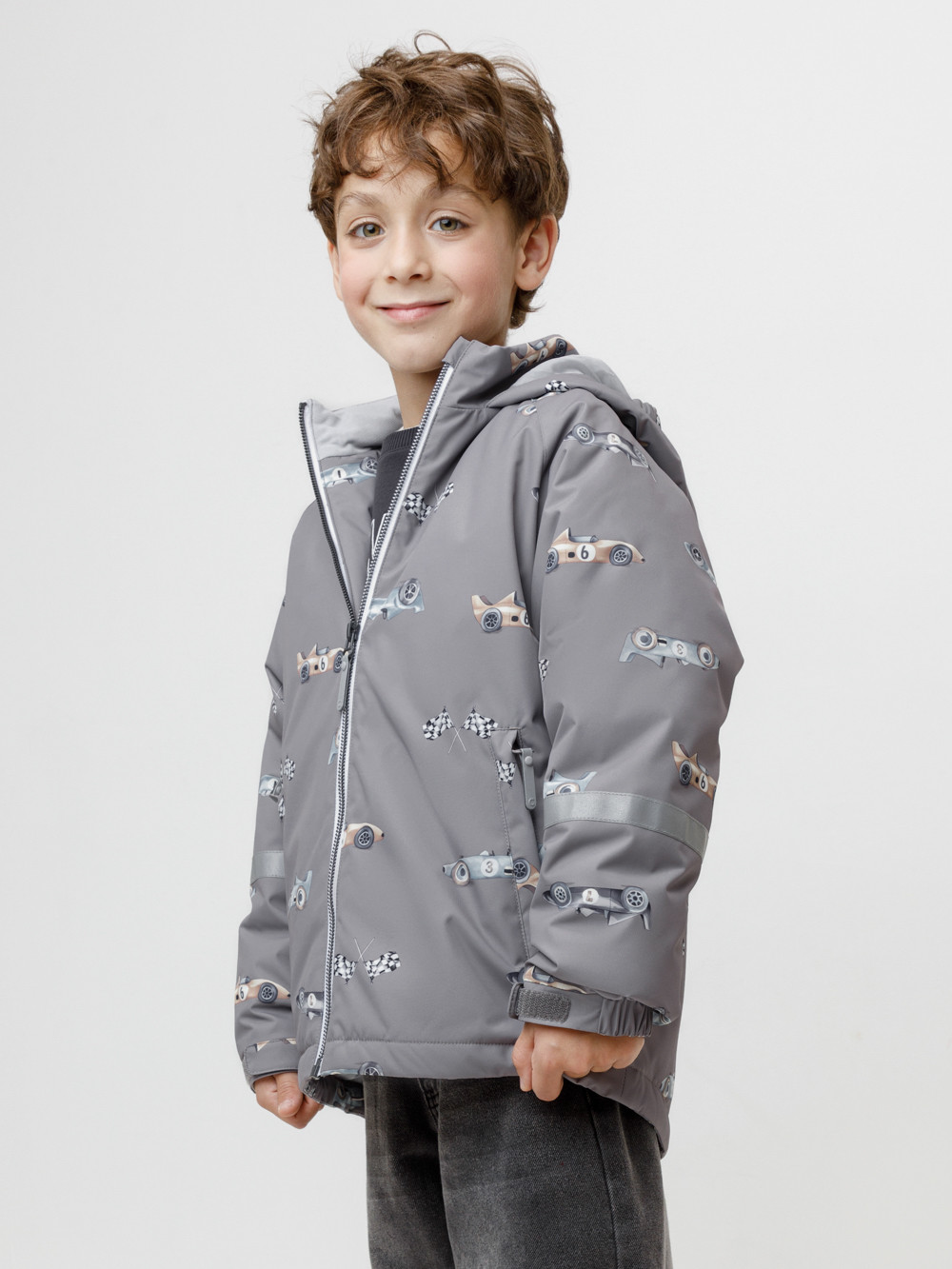 Демисезонная куртка для мальчика с утеплителем SEE®: 120 г/м2. Выполнена из мембранной ткани с тефлоновой обработкой. Данный вид обработки предохраняет изделие от загрязнения и хорошо отталкивает влагу. Подклад выполнен из трикотажа в размерах 86-92 и 92-98 и из 100% полиэстера в размерах от 98-104 до 116-122. Куртка застёгивается на молнию, предусмотрена защита подбородка. Несъёмный капюшон имеет эластичные утяжки по бокам. Низ рукавов на эластичной резинке регулируется с помощью липучек для лучшего прилегания. По низу изделия эластичная утяжка со стопперами. По бокам два кармана на молниях. Во всех изделиях верхнего ассортимента для безопасности ребёнка предусмотрены светоотражающие элементы.