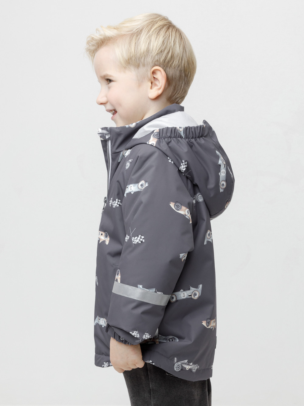 Демисезонная куртка для мальчика с утеплителем SEE®: 120 г/м2. Выполнена из мембранной ткани с тефлоновой обработкой. Данный вид обработки предохраняет изделие от загрязнения и хорошо отталкивает влагу. Подклад выполнен из трикотажа в размерах 86-92 и 92-98 и из 100% полиэстера в размерах от 98-104 до 116-122. Куртка застёгивается на молнию, предусмотрена защита подбородка. Несъёмный капюшон имеет эластичные утяжки по бокам. Низ рукавов на эластичной резинке регулируется с помощью липучек для лучшего прилегания. По низу изделия эластичная утяжка со стопперами. По бокам два кармана на молниях. Во всех изделиях верхнего ассортимента для безопасности ребёнка предусмотрены светоотражающие элементы.