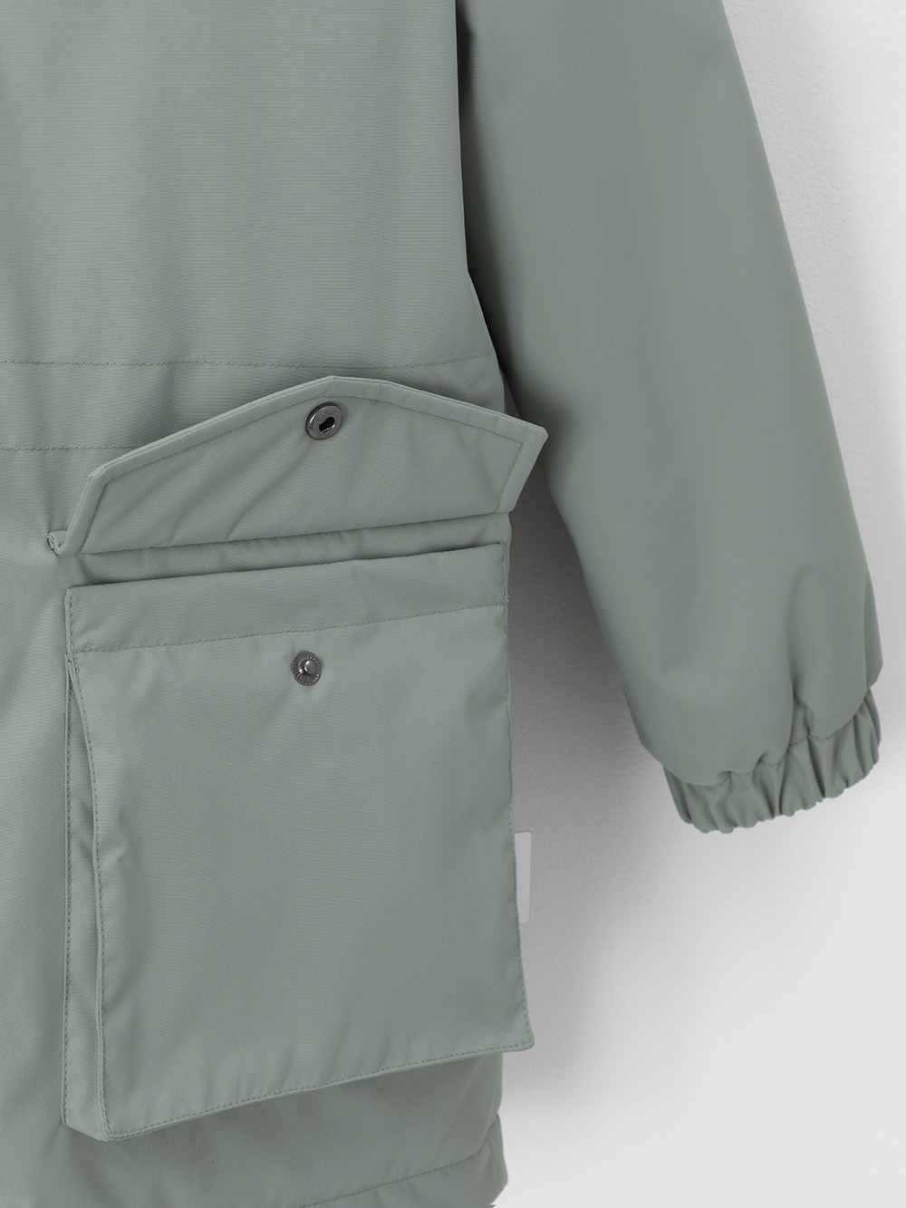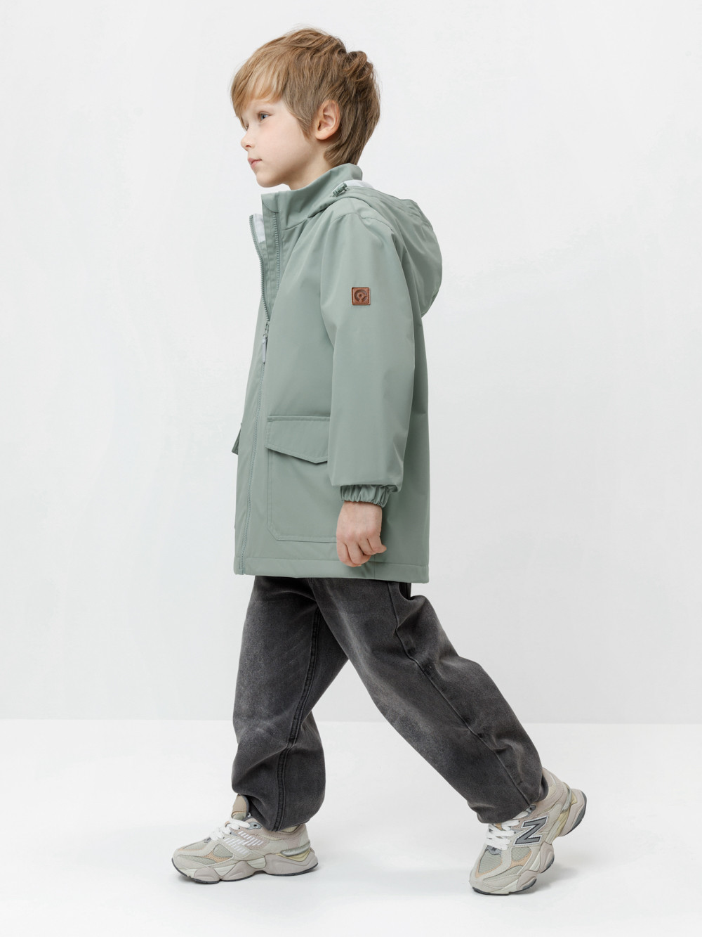 Демисезонная куртка для мальчика с утеплителем SEE 120 г/м2. Выполнена из мембранной ткани с тефлоновой обработкой. Данный вид обработки предохраняет изделие от загрязнения и хорошо отталкивает влагу. Подклад выполнен из 100% полиэстера. Куртка застёгивается на молнию, предусмотрена защита подбородка. Несъёмный капюшон имеет утяжку на шнур со стопперами по бокам. Низ рукавов на эластичной резинке. По талии эластичная утяжка со стопперами. По бокам два кармана с клапанами на кнопках. Во всех изделиях верхнего ассортимента для безопасности ребёнка предусмотрены светоотражающие элементы.