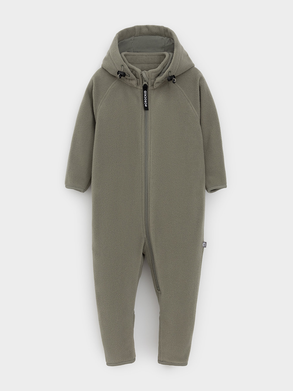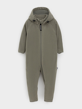 Флисовый комбинезон для мальчика со съёмным капюшоном. Капюшон регулируется по ширине с помощью эластичной утяжки со стопперами. Подклад выполнен из гладкого трикотажа супрем, произведённого из высококачественного натурального хлопка. Застёгивается на удлинённую молнию с мягкой защитой шеи и подбородка. В размерах 62, 68 и 74 на рукавах и ножках есть отвороты. Комбинезон сохраняет цвет и форму после многократных стирок.