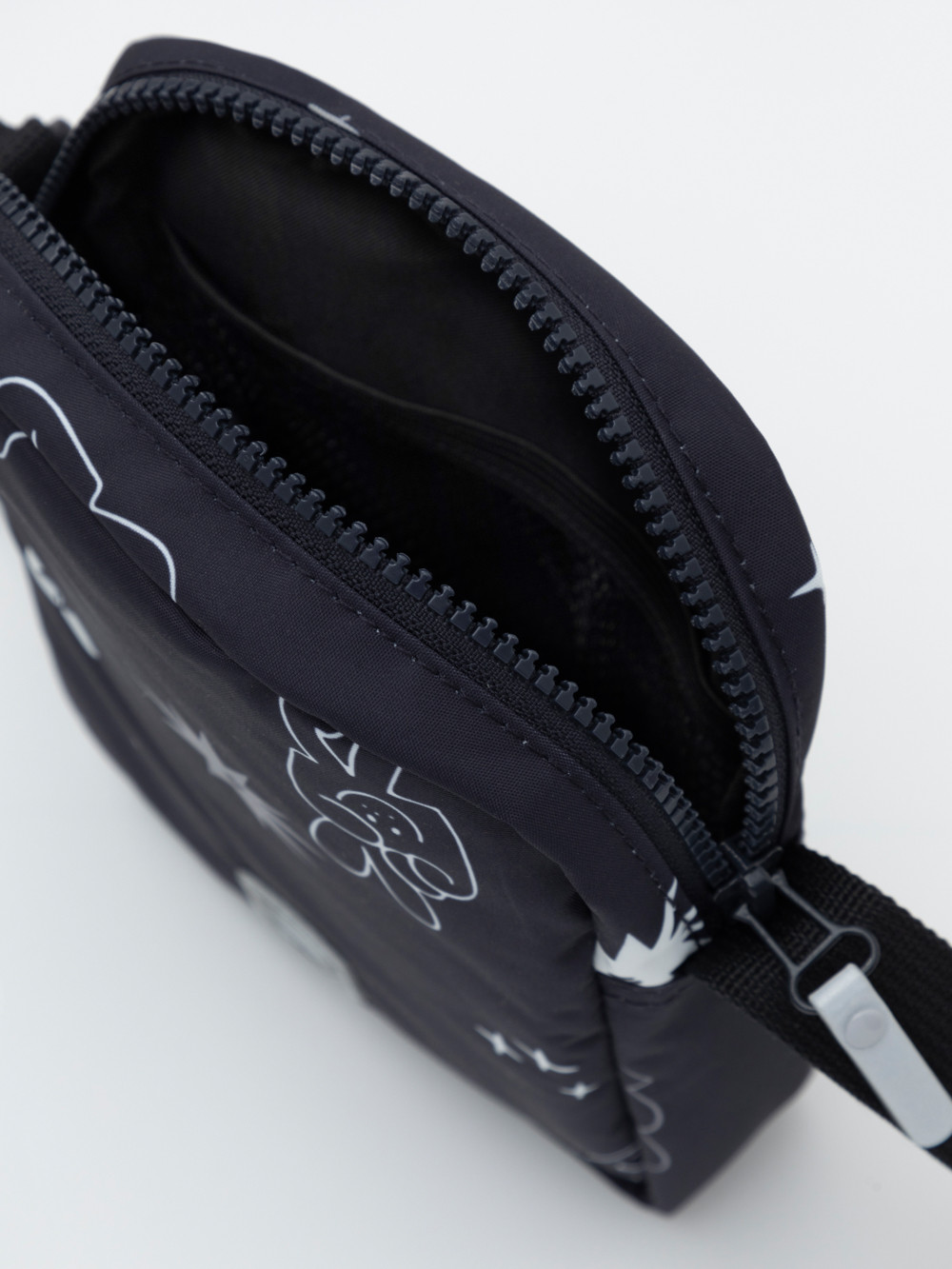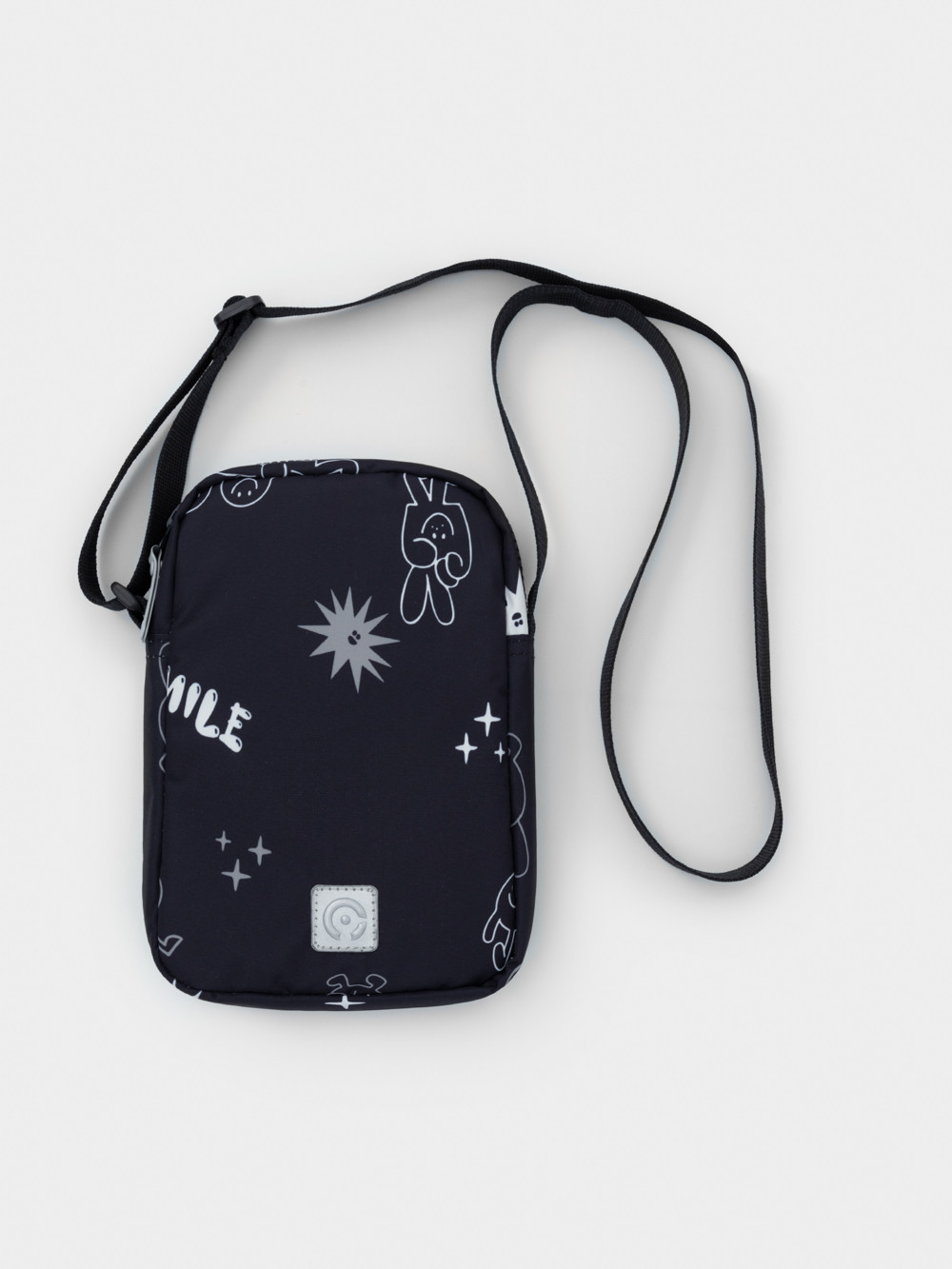 Детская сумка на ремне с набивным рисунком. Застёгивается на молнию. Ремень регулируется по длине. Внутри карман из сетки. Светоотражающие элементы служат для дополнительной безопасности в тёмное время суток. Размер: 14,5х19см