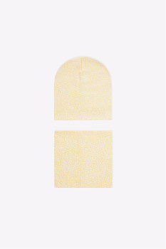 Комплект для девочки: шапка и снуд из хлопкового трикотажа с добавлением эластана. Оригинальная набивка выполнена из стойких гипоаллергенных текстильных красителей. Изделия хорошо тянутся, после многократных стирок сохраняют цвет и форму.