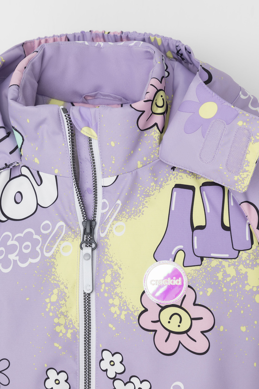 Демисезонный комбинезон для девочки с утеплителем SEE, 120 г/м2. Выполнен из мембранной ткани с дополнительной тефлоновой обработкой. Данный вид обработки предохраняет изделие от загрязнения и лучше отводит влагу. Подклад из 100% полиэстера. Для удобного одевания комбинезон застёгивается на удлинённую молнию с защитой подбородка. Капюшон не снимается, по верхнему краю есть эластичная вставка. По низу рукавов и брючин, а также на спинке изделия предусмотрены эластичные резинки для лучшего прилегания. Для фиксации комбинезона используются съёмные силиконовые штрипки. Во всех изделиях верхнего ассортимента для безопасности ребёнка предусмотрены светоотражающие элементы.