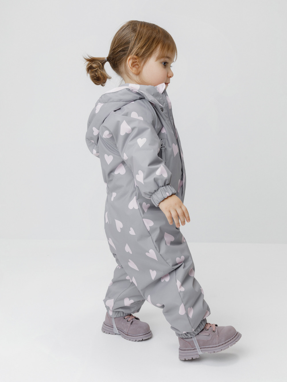Демисезонный комбинезон ясельный с утеплителем Fellex®, 120 г/м2. Выполнен из мембранной ткани с дополнительной тефлоновой обработкой. Данный вид обработки предохраняет изделие от загрязнения и лучше отводит влагу. Подклад из 100% хлопка. Для удобного одевания комбинезон застёгивается на удлинённую молнию с защитой подбородка. Ветрозащитная планка фиксируется на липучках и кнопках. Утяжка на капюшоне с потайным стоппером. По низу рукавов и брючин, а также на спинке изделия предусмотрены эластичные резинки для лучшего прилегания. Для фиксации комбинезона используются съёмные силиконовые штрипки. В размерах 62-68, 68-74 и 74-80 есть функциональные отвороты на рукавах и брючинах. Во всех изделиях верхнего ассортимента для безопасности ребёнка предусмотрены светоотражающие элементы.