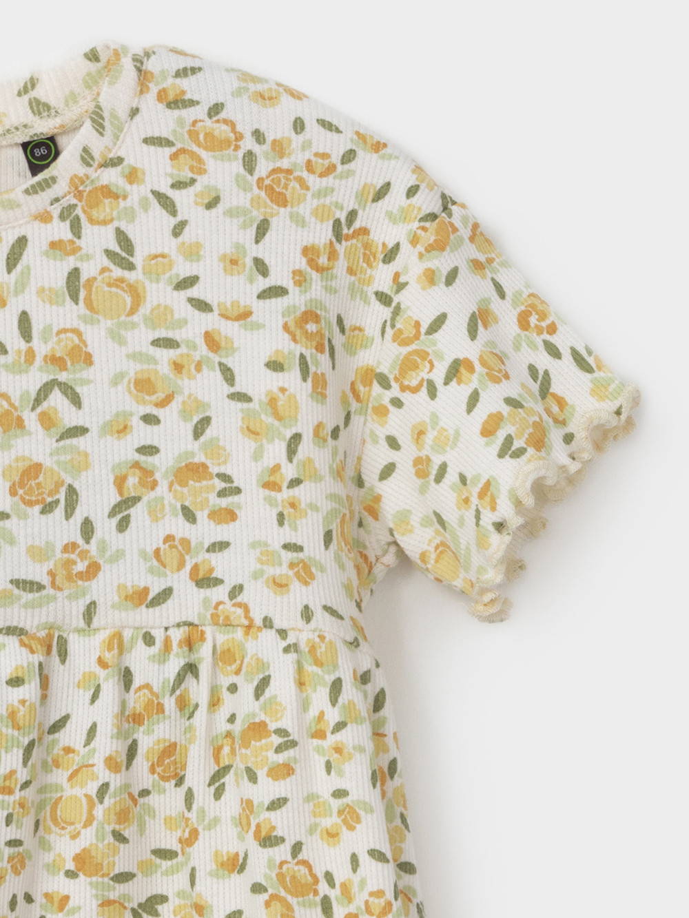 Платье для девочки из высококачественного эластичного трикотажа в рубчик. Застёгивается сзади на кнопки. Изделие сохраняет форму и стойкий цвет после многочисленных стирок и идеально подходит на каждый день. Все трикотажные полотна производятся в соответствии с нормами швейцарского сертификата ЭкоТекс.