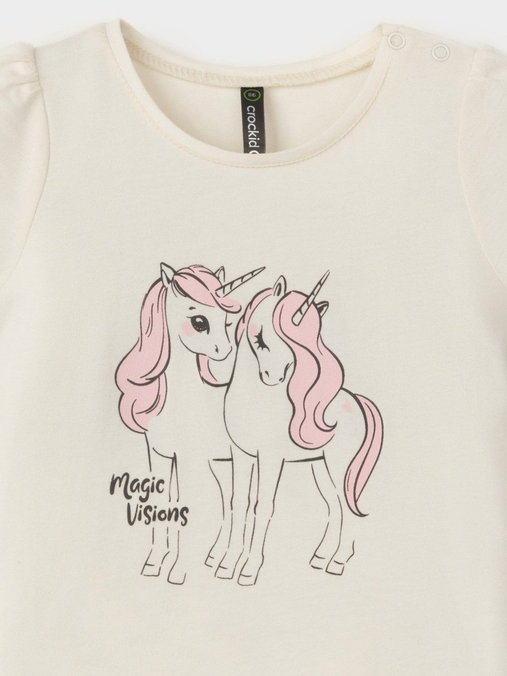 Футболка для девочки из высококачественного трикотажного полотна. Оригинальный принт выполнен из стойких текстильных гипоаллергенных красителей. Изделие сохраняет цвет и форму после многократных стирок. Все трикотажные полотна производятся в соответствии с нормами швейцарского сертификата ЭкоТекс.