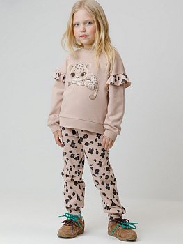 Тёплые брюки для девочки из высококачественного футера с начёсом. Эластичный пояс на резинке регулируется по ширине при помощи шнурка. Оригинальный рисунок выполнен из стойких текстильных красителей. Изделие сохраняет форму и стойкий цвет после многочисленных стирок. Все трикотажные полотна производятся в соответствии с нормами швейцарского сертификата ЭкоТекс.
