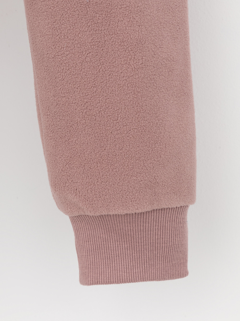 Однотонные детские брюки из флиса с поясом на резинке. Низ изделия на манжетах из эластичного трикотажа в рубчик. Брюки сохраняют цвет и форму после многократных стирок.