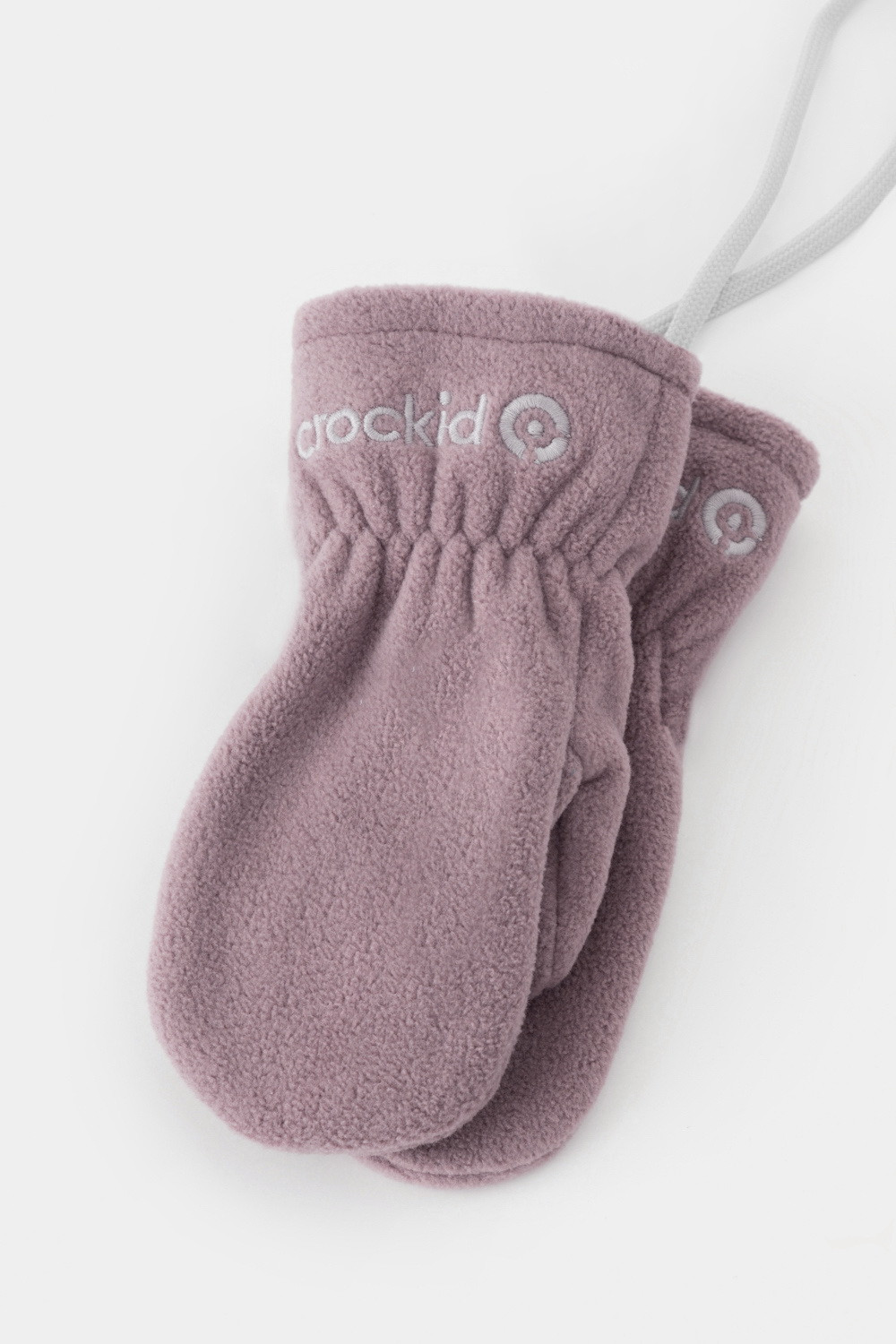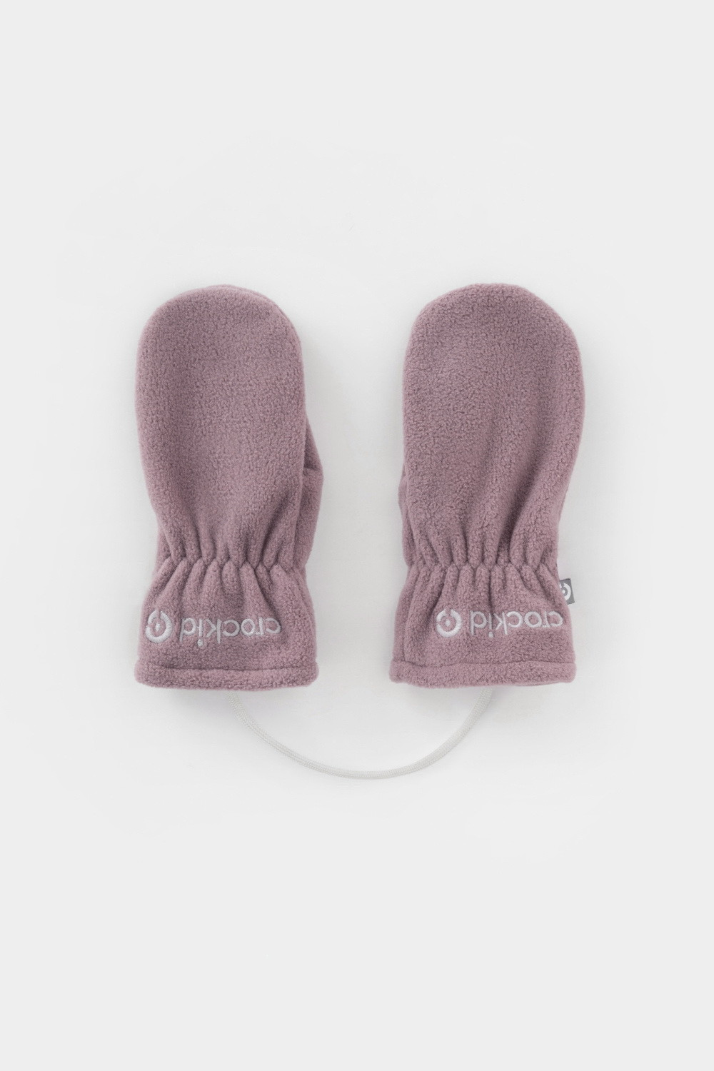 Флисовые варежки детские на шнурке. В области запястья вшита эластичная резинка. Варежки сохраняют цвет и форму после многократных стирок.