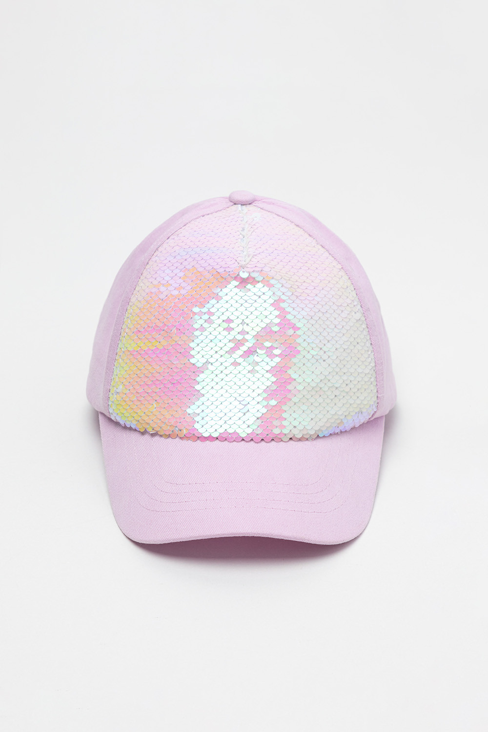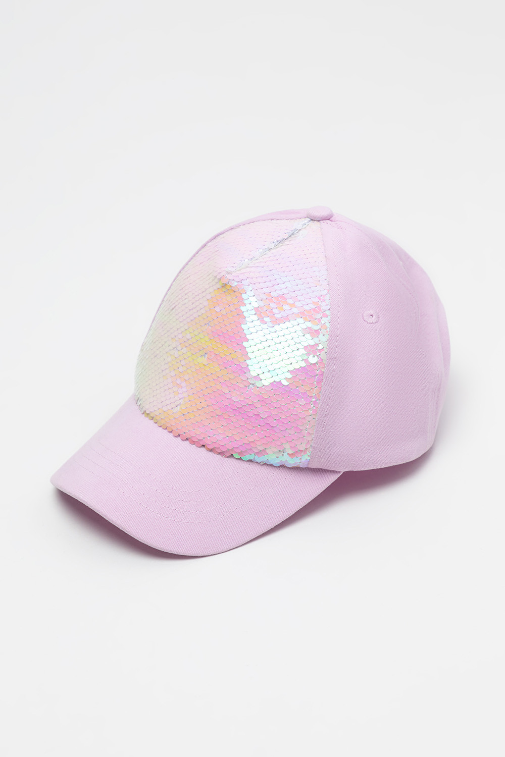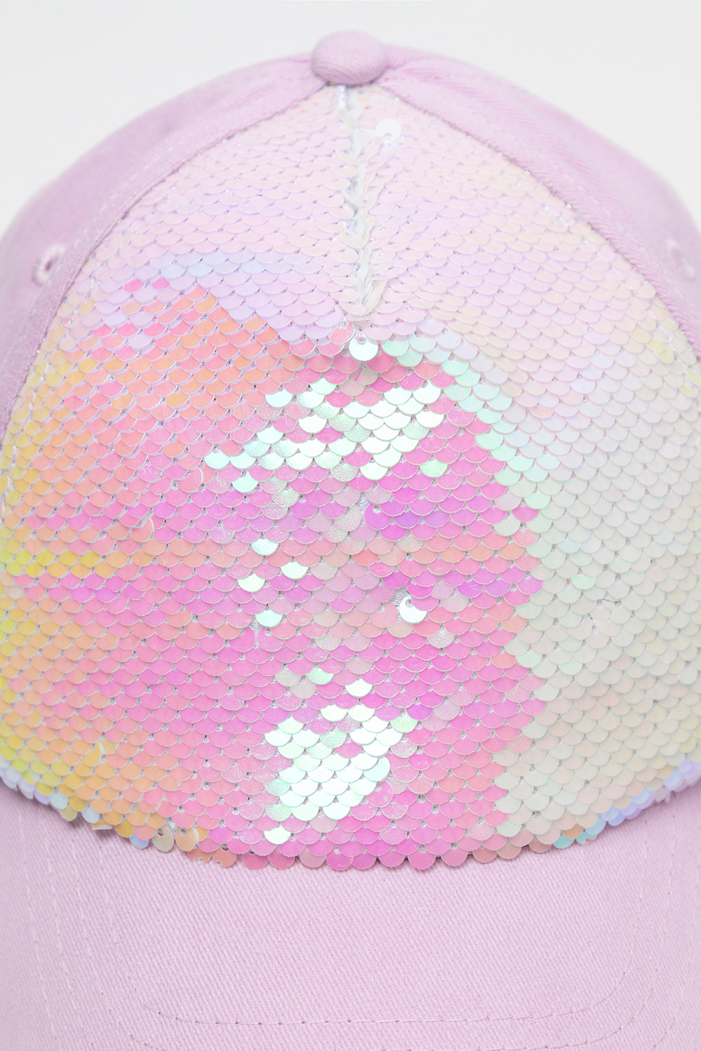 Кепка для девочки из натурального хлопка с пайетками. Регулируется по ширине и фиксируется на затылке с помощью металлического зажима.