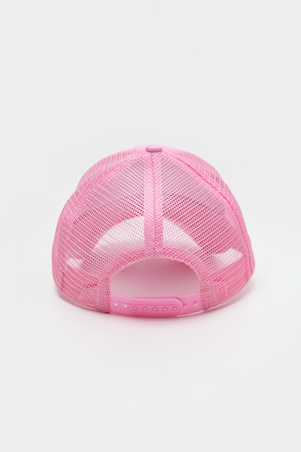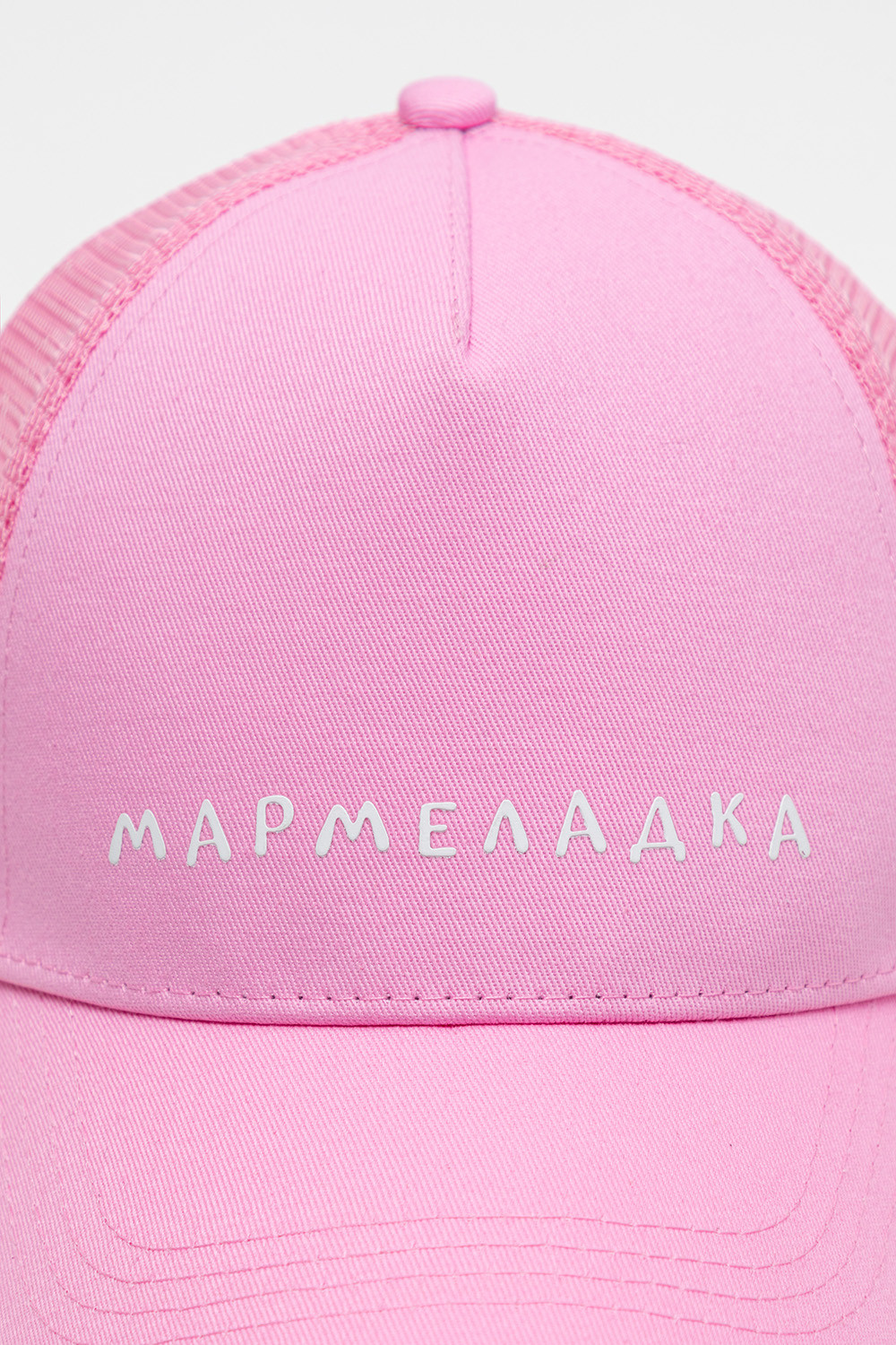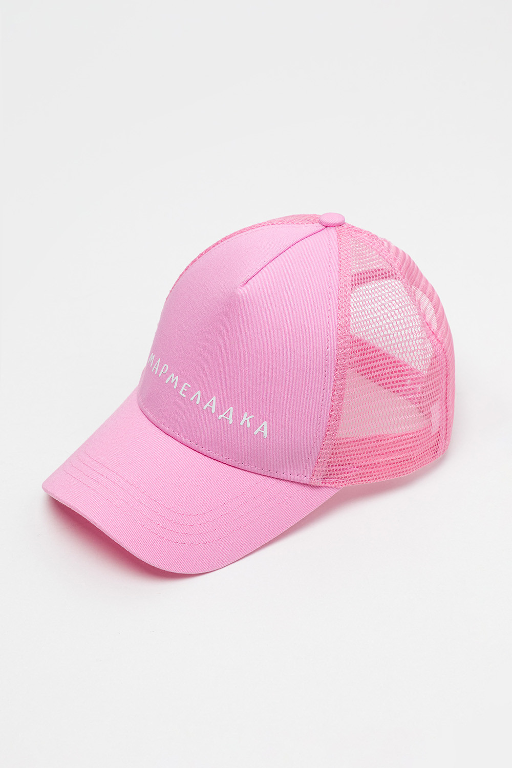 Кепка для девочки из текстиля и сетки. Спереди оригинальный принт. Регулируется по ширине и фиксируется на затылке с помощью пластиковой застежки.