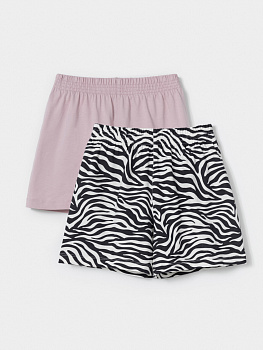Трикотажные шорты для девочки, комплект из 2 штук. Изготовлены из гладкого трикотажа супрем, который произведён из 100% натурального хлопка высокого качества. Шорты отлично дышат, а свободный крой не стесняет движения, поэтому они комфортны для активных игр, отдыха и занятий спортом. Изделия сохраняют цвет и форму после многократных стирок. Все трикотажные полотна производятся в соответствии с нормами швейцарского сертификата ЭкоТекс.