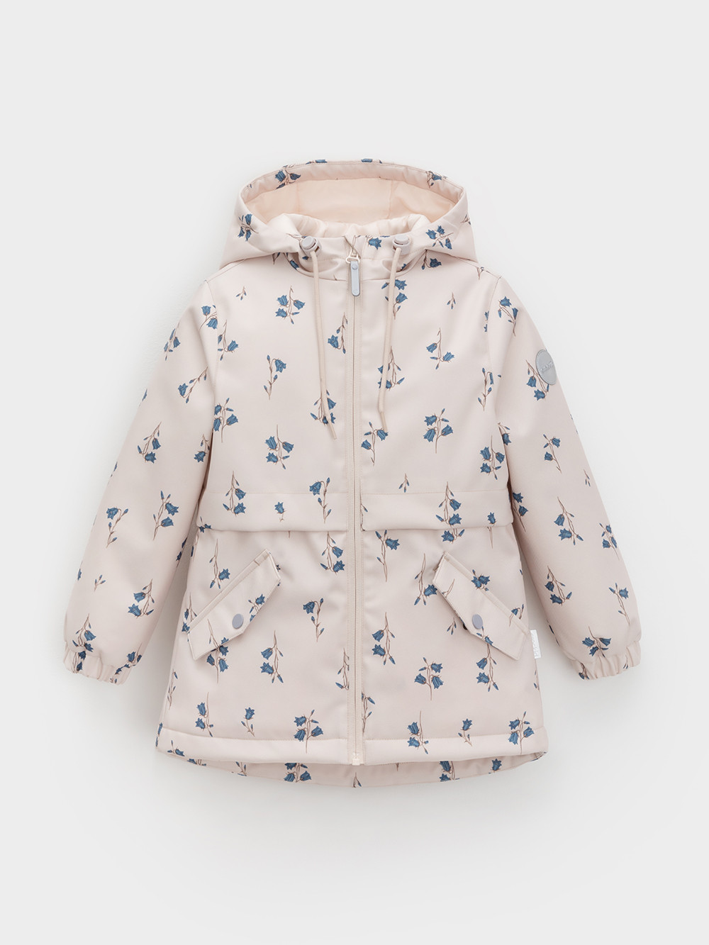 Демисезонная куртка для девочки с утеплителем SEE: 120 г/м2. Выполнена из мембранной ткани с дополнительной тефлоновой обработкой. Данный вид обработки предохраняет изделие от загрязнения и хорошо отталкивает влагу. Подклад из 100% полиэстера. Куртка застёгивается на молнию, предусмотрена защита подбородка. Несъёмный капюшон имеет утяжку на шнурок со стопперами. Низ рукавов на эластичной резинке для лучшего прилегания. На талии эластичная внутренняя утяжка при помощи шнура со стопперами. По бокам два кармана. Во всех изделиях верхнего ассортимента для безопасности ребёнка предусмотрены светоотражающие элементы.
