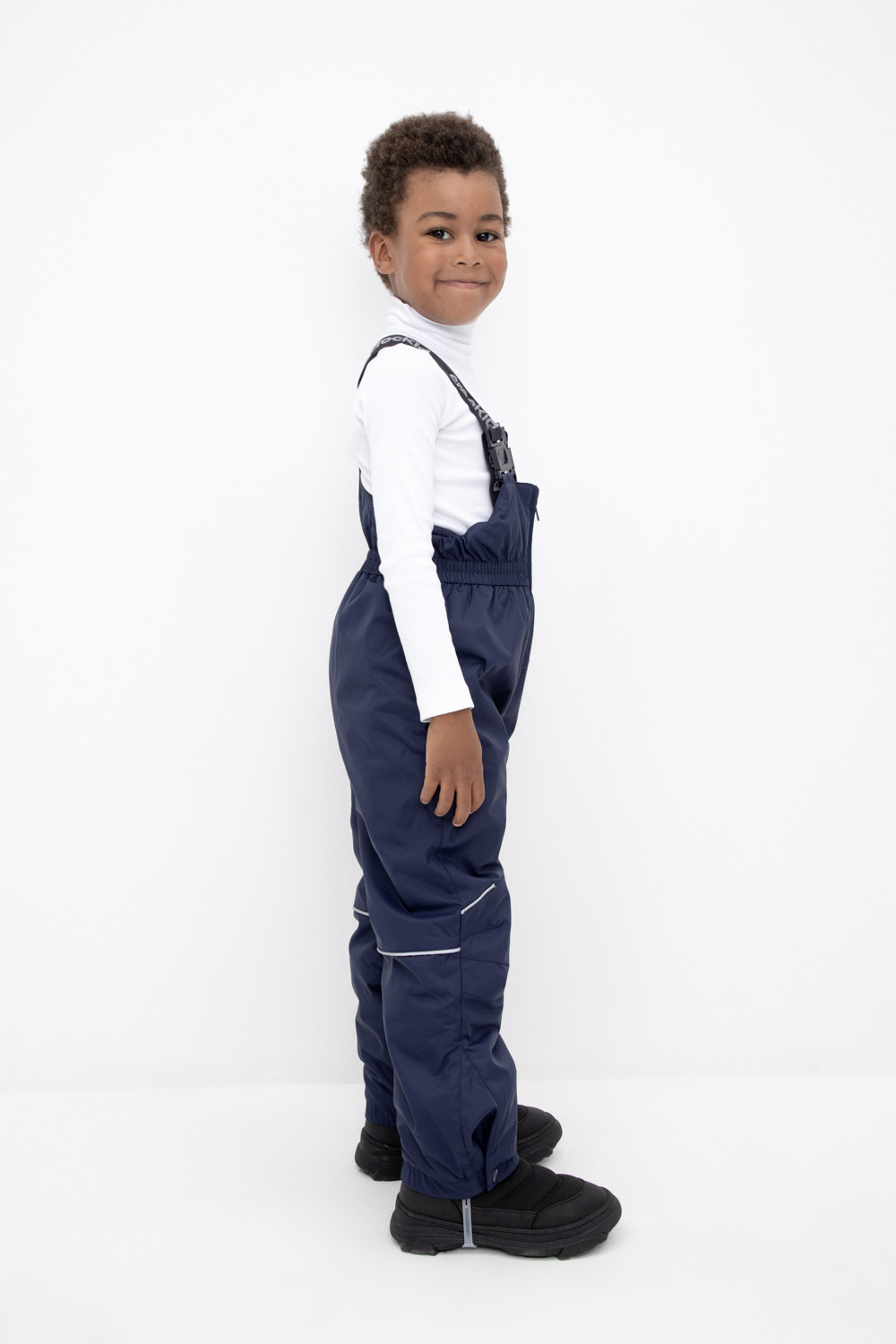 • Благодаря высокой талии и подтяжкам с регулировкой по росту брюки идеально сидят на фигуре.