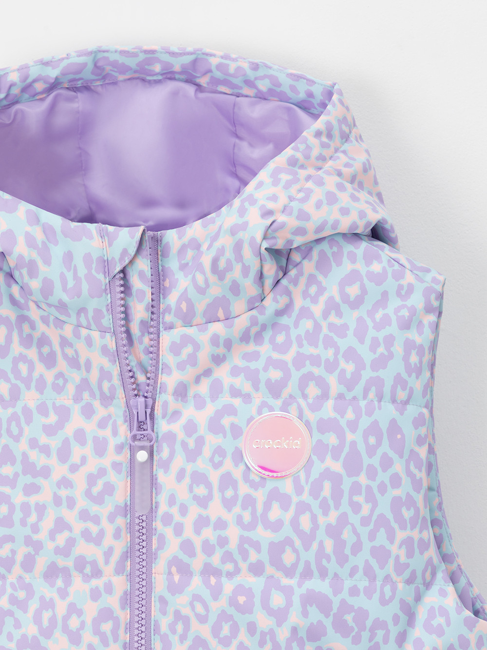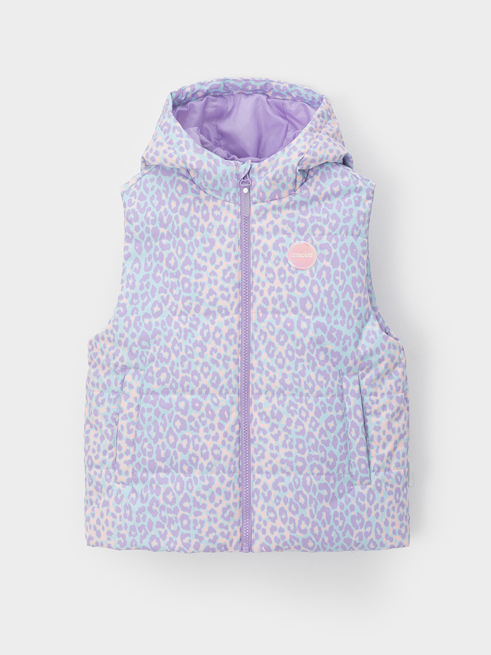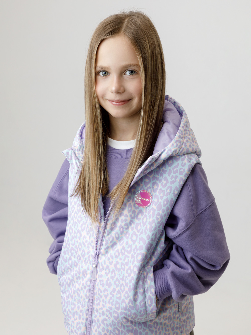 Стёганый жилет с капюшоном для девочки с утеплителем Fellex®, 120 г/м2. Выполнен из мембранной ткани с дополнительной тефлоновой обработкой. Данный вид обработки предохраняет изделие от загрязнения и лучше отводит влагу. Подклад из 100% полиэстера. Капюшон не снимается. Изделие застёгивается на молнию, предусмотрена защита подбородка. Два кармана по бокам без застёжек. Во всех изделиях верхнего ассортимента для безопасности ребёнка предусмотрены светоотражающие элементы.