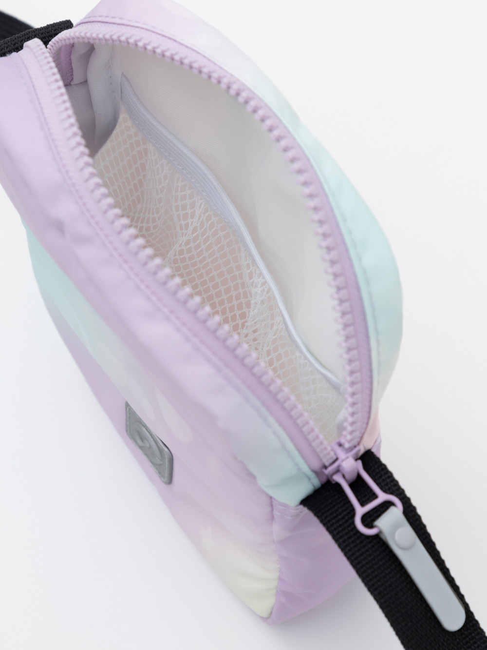 Детская сумка на ремне с набивным рисунком. Застёгивается на молнию. Ремень регулируется по длине. Внутри карман из сетки. Светоотражающие элементы служат для дополнительной безопасности в тёмное время суток. Размер: 14,5х19см