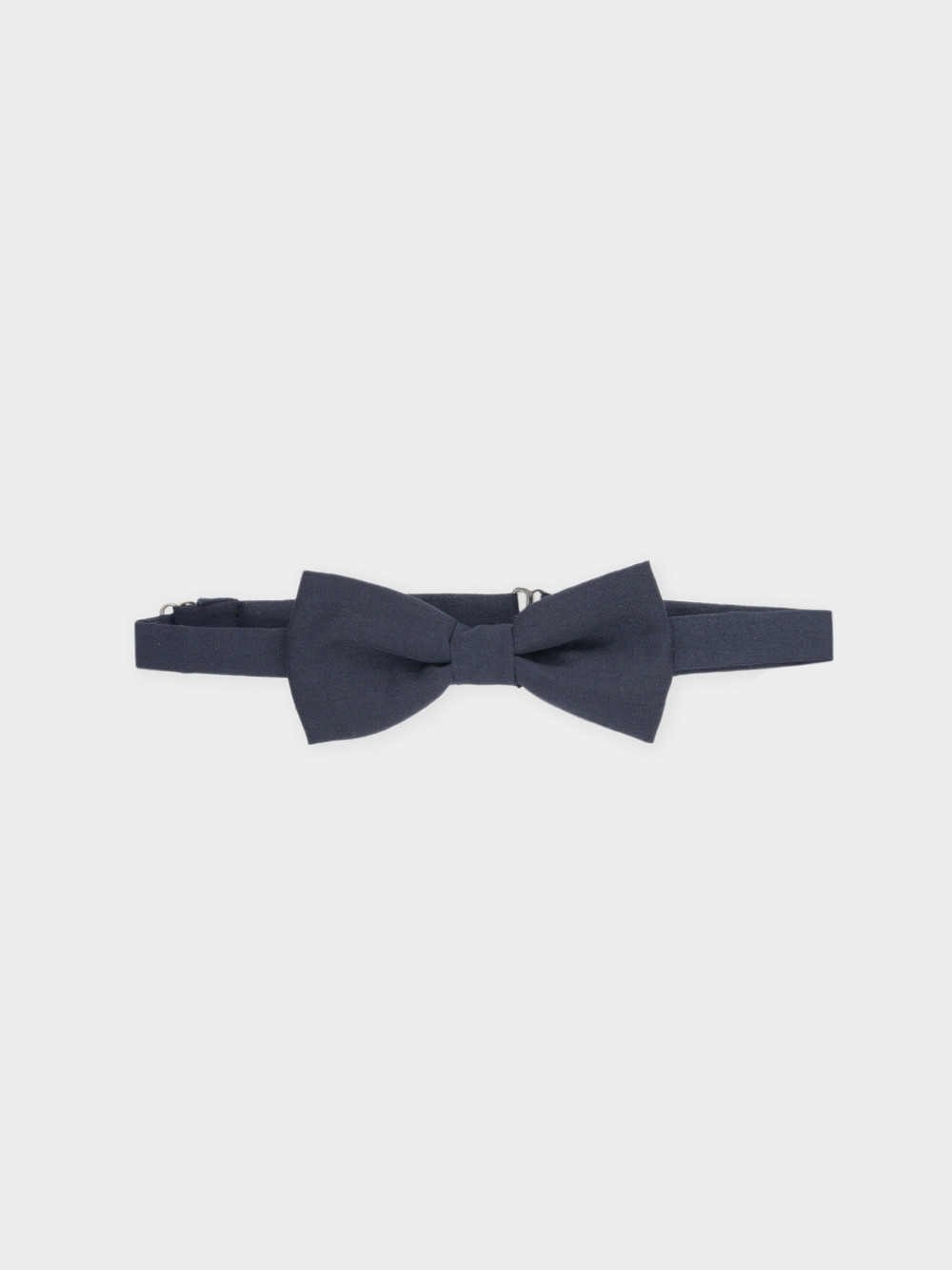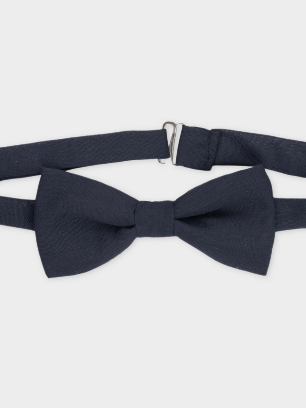 Бабочка для мальчика из текстиля. Цвет темно-синий. Удобная застежка с регулятором ширины ремешка, эластичная резинка.