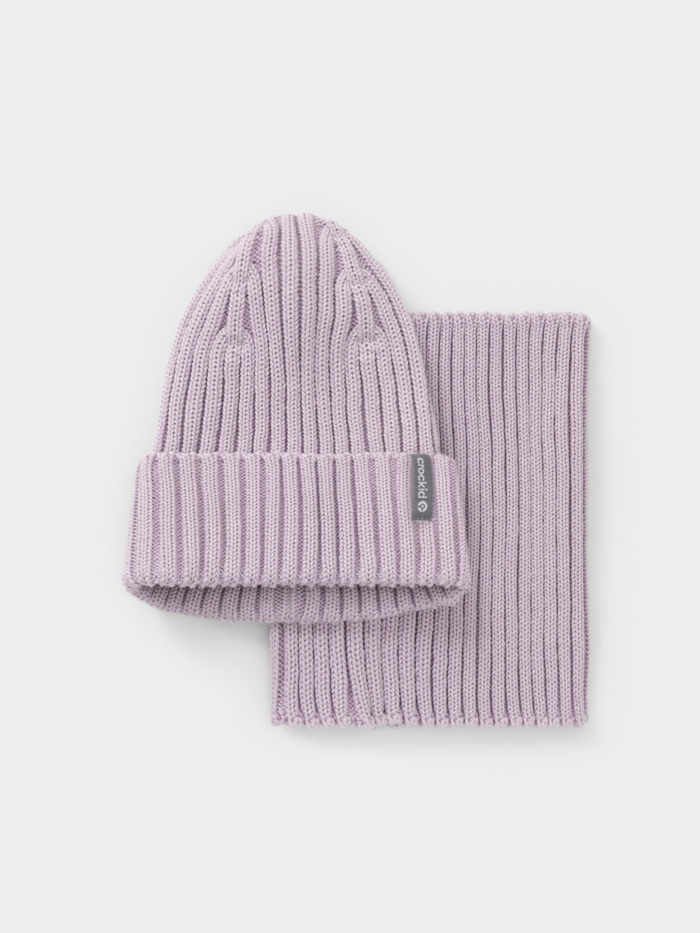 Комплект демисезонный из шапки с отворотом и снуда. Изготовлен из высококачественной пряжи из хлопка и акрила. Комфортно прилегает, обеспечивая защиту от холода и хороший теплообмен. Изделия хорошо переносят многократные стирки, сохраняя цвет и форму.