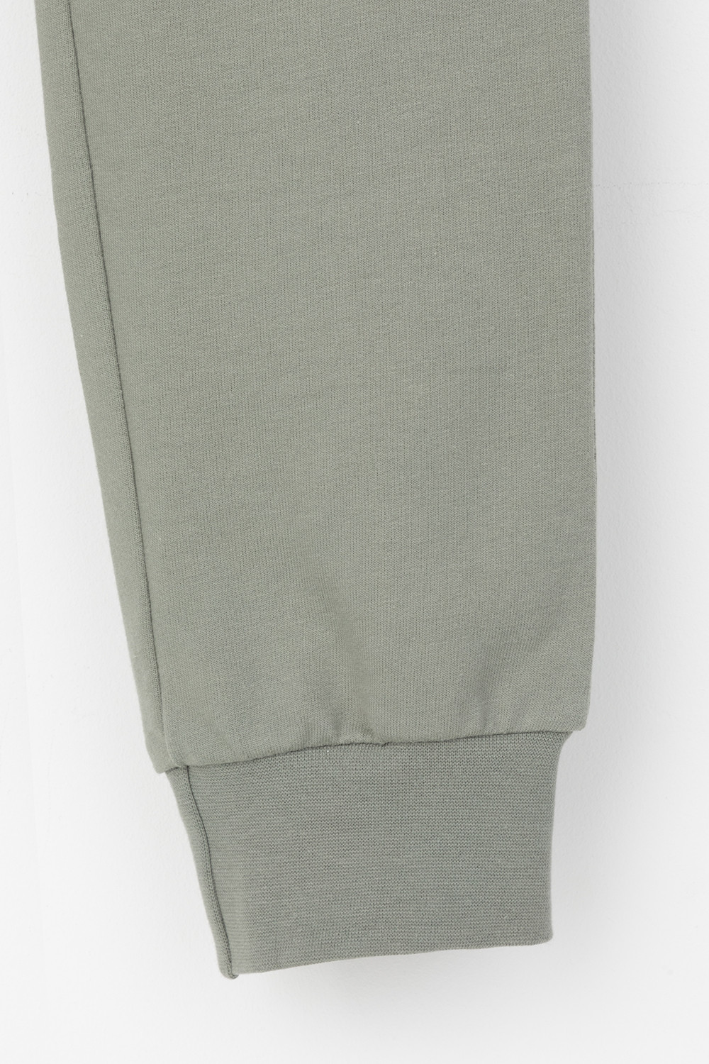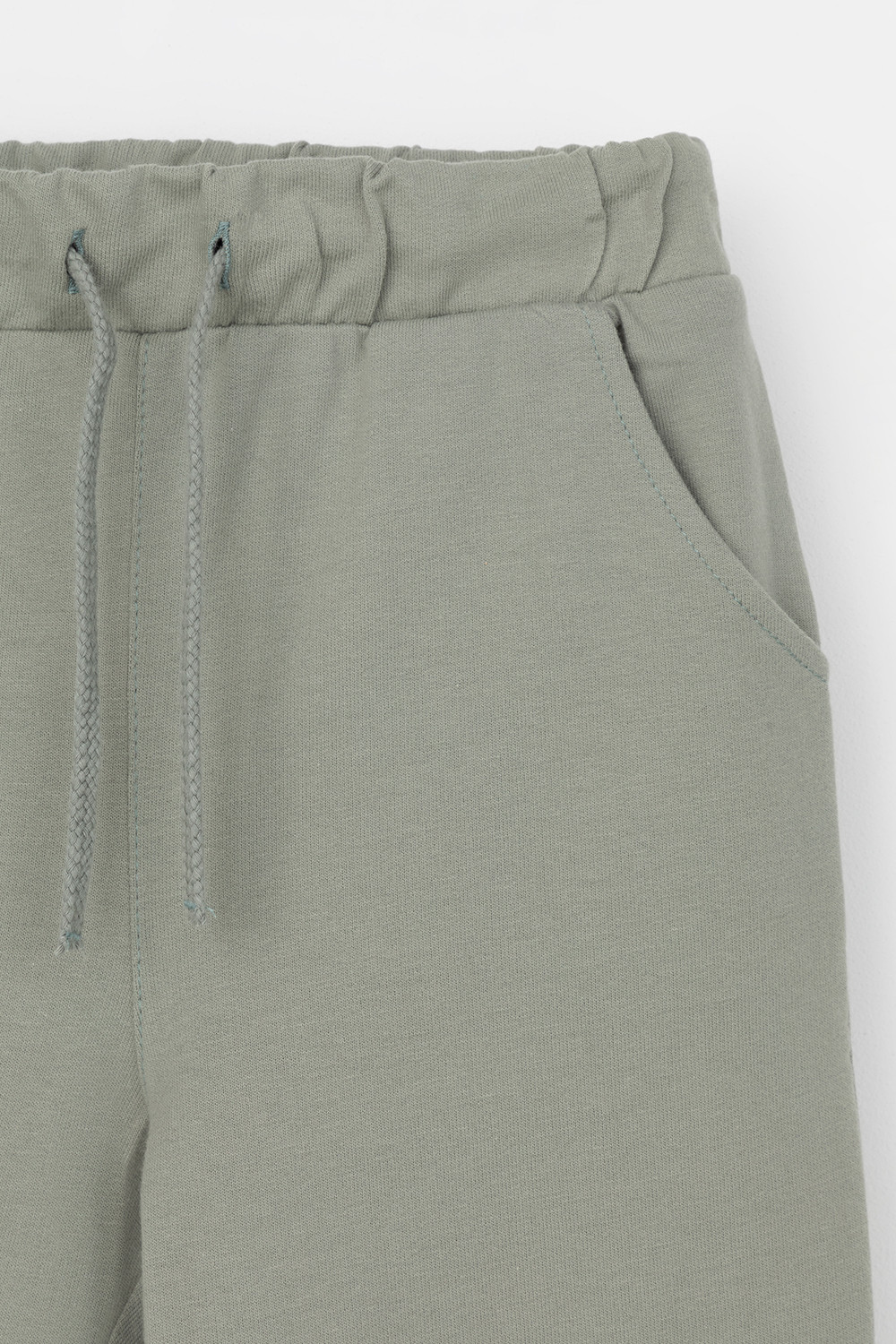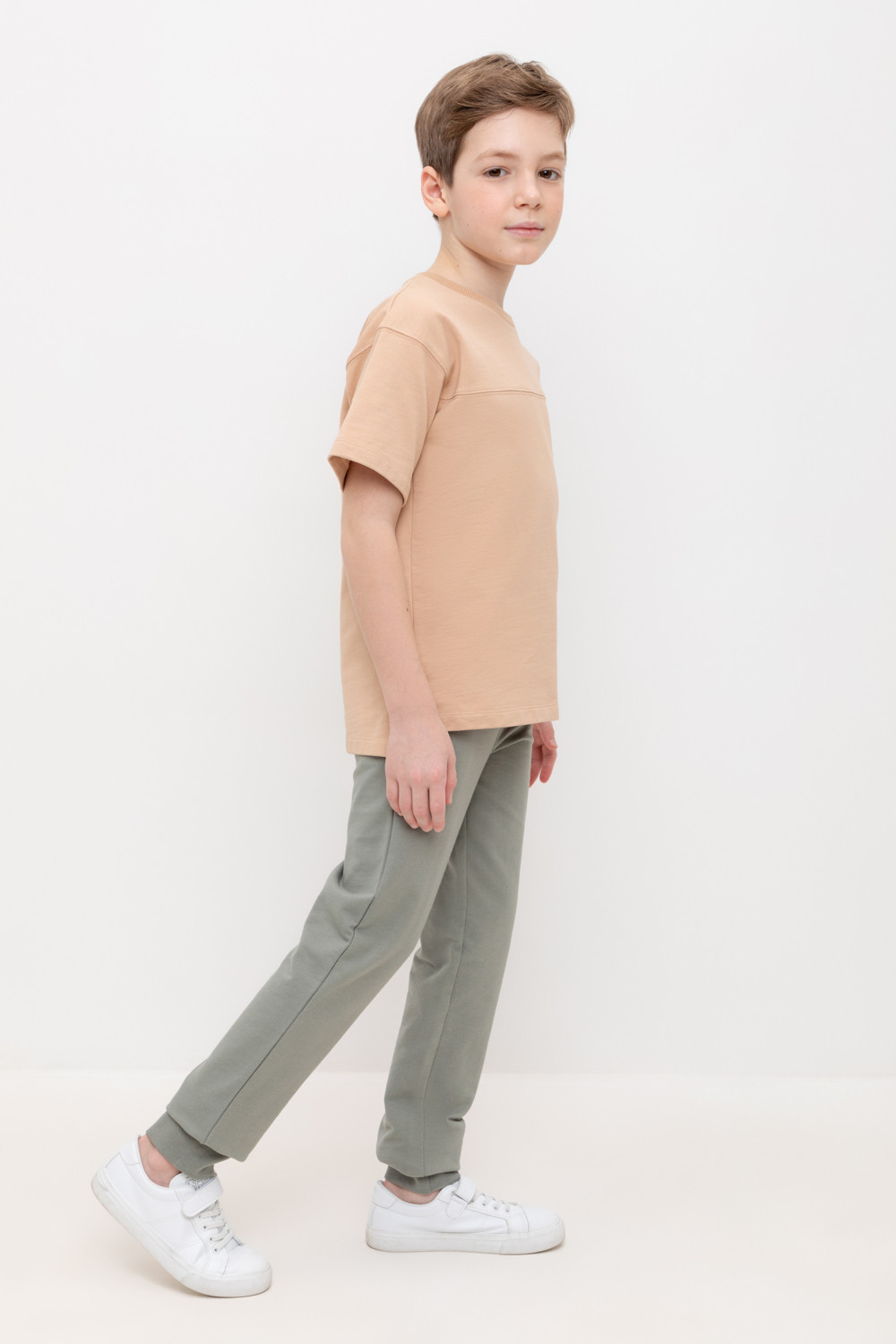 Трикотажные брюки для мальчика из петельчатого футера. Эластичный пояс на резинке регулируется по ширине с помощью шнурка, по бокам два удобных кармана, внизу эластичные манжеты.
