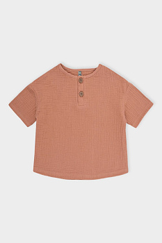 Легкая детская рубашка свободного кроя из мягкого хлопокового муслина, слегка спущенной линией плеча, длинными рукавами и с застежкой на пуговицы. Изделие сохраняет цвет, форму и фактуру жатости после многократных стирок.