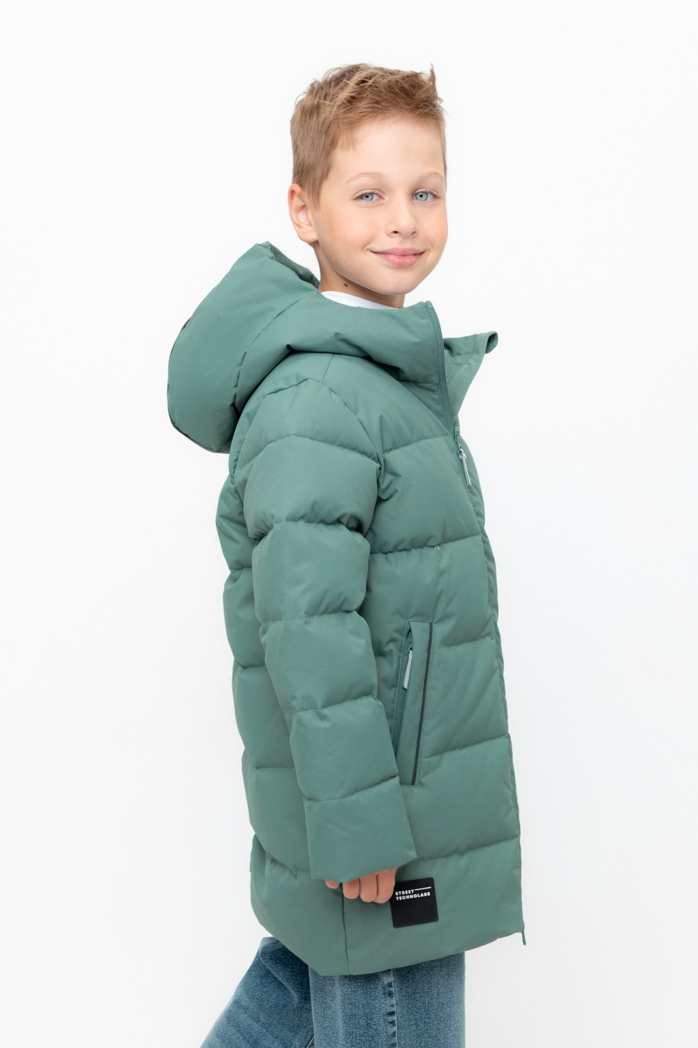 Пальто для мальчика с натуральным утеплителем из гипоаллергенного гусиного пуха (70%) и пера (30%).