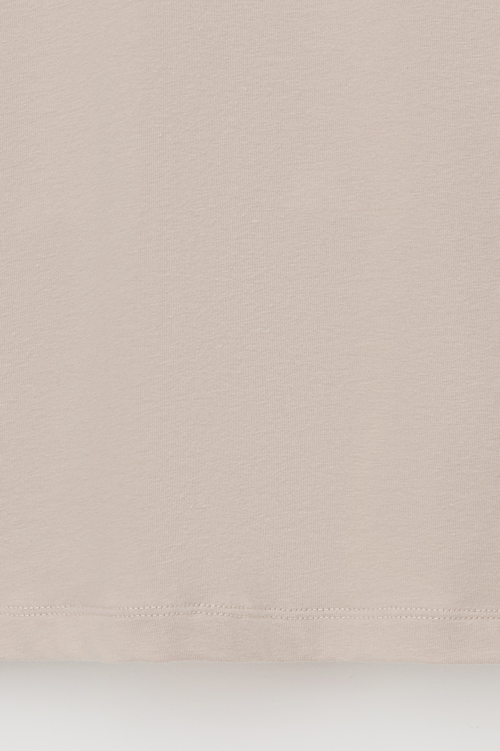 Базовый джемпер с короткими рукавами и воротником-стойкой из плотного однотонного трикотажа супрем с добавлением спандекса.