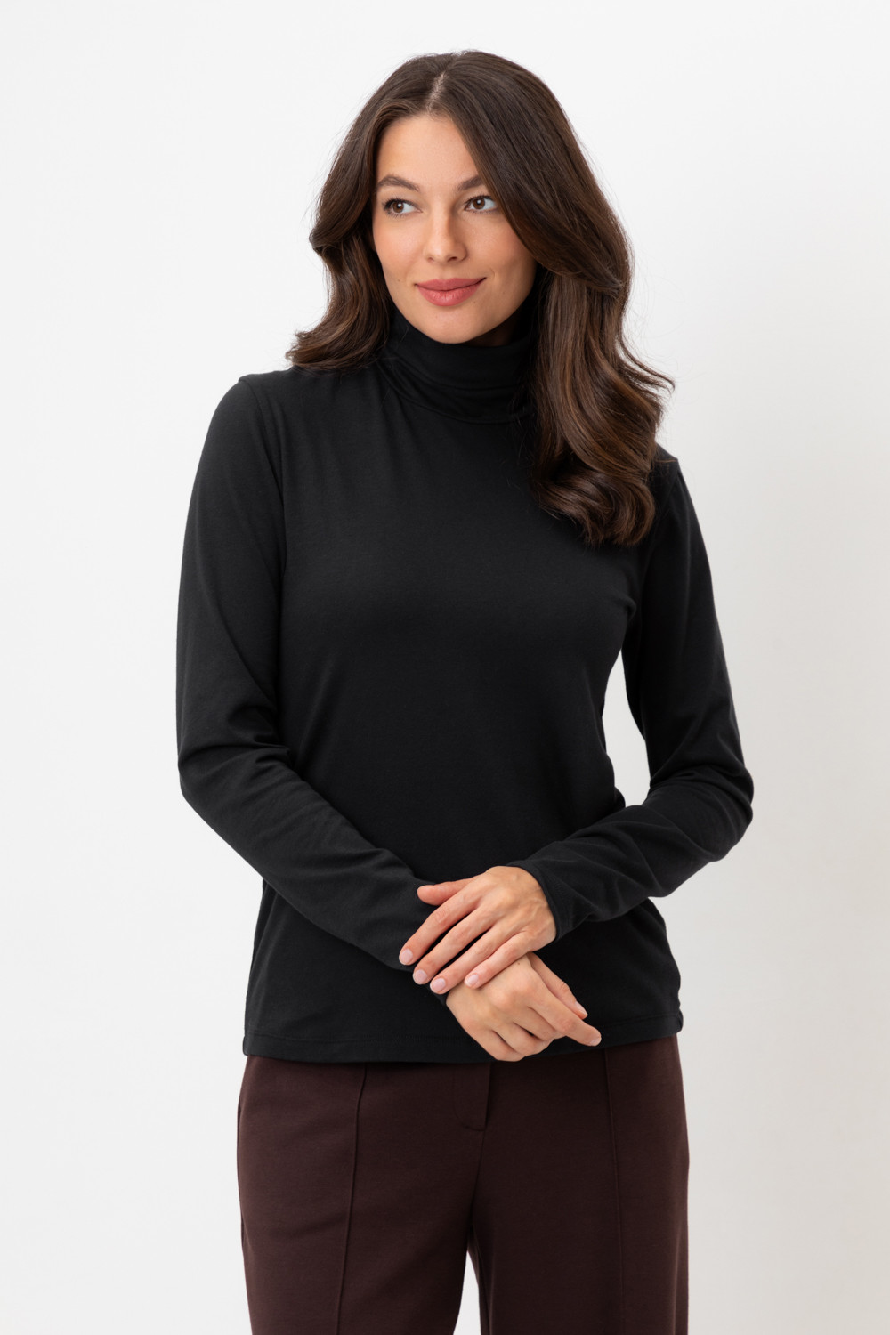Водолазка базовая с высоким воротником-стойкой и длинными рукавами. Мягкий материал изделия приятен к телу и хорошо тянется. Приталенный силуэт плавно подчёркивает линии тела. Идеально подходит для повседневных и деловых образов.