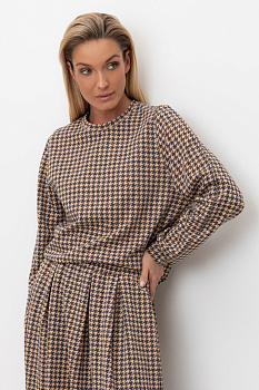 Уютный джемпер со спущенным плечом и объемными рукавами из плотного гладкого трикотажа интерлок.