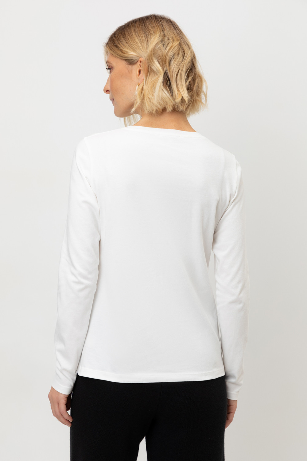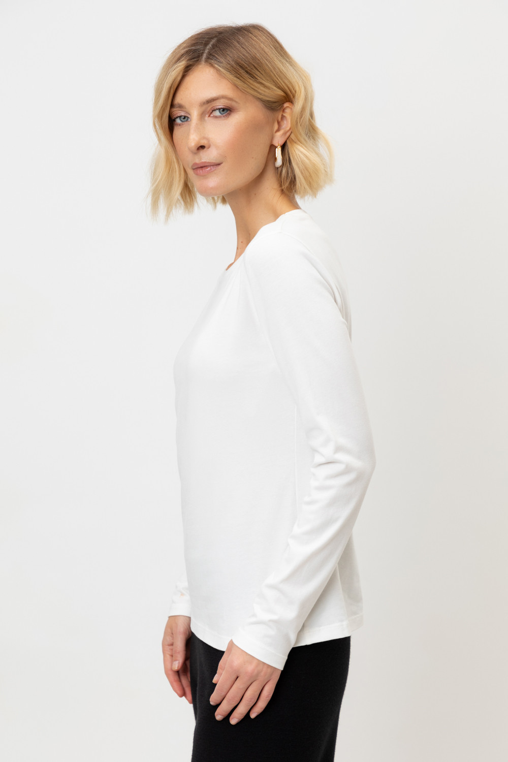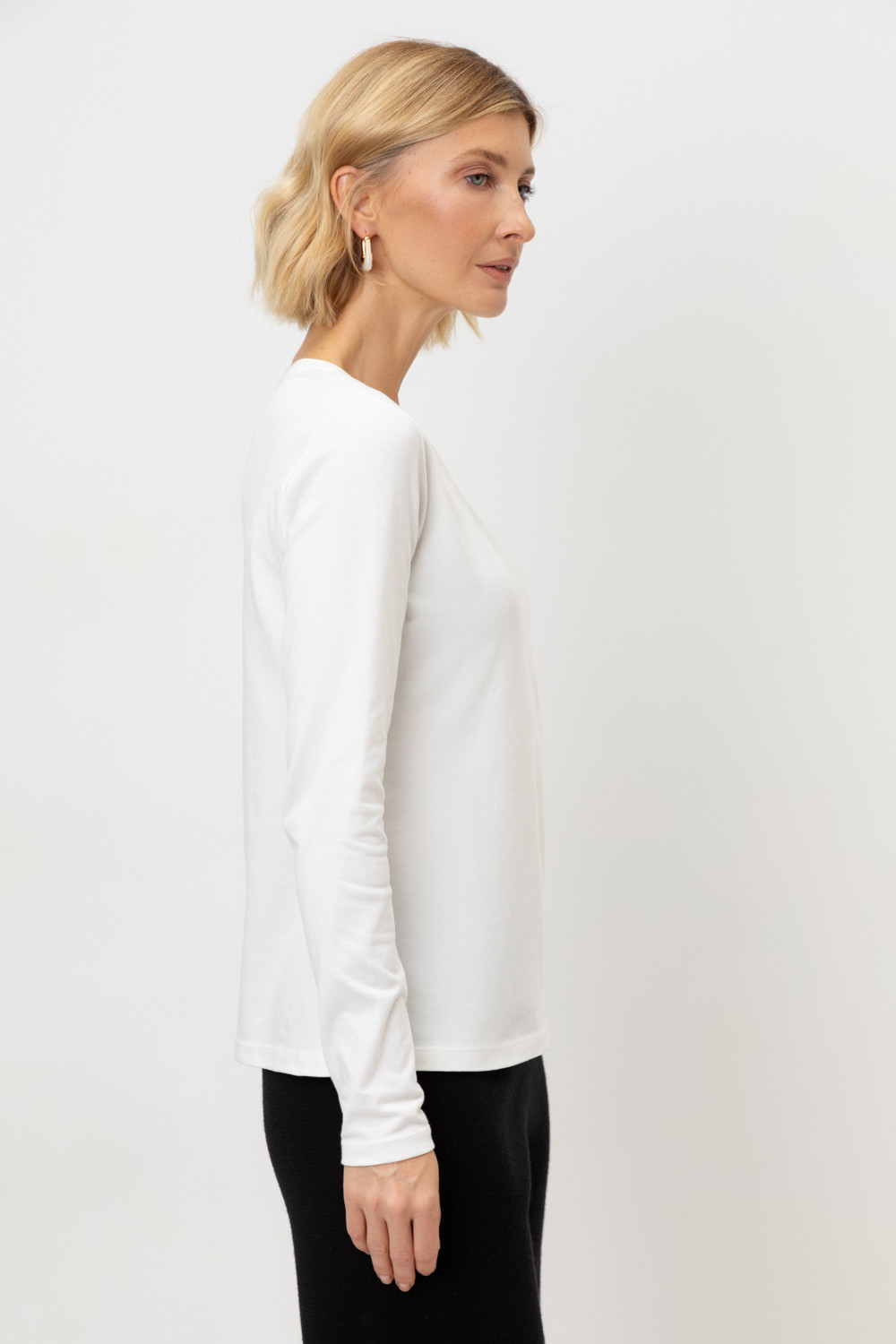 Базовый лонгслив из плотного однотонного трикотажа супрем с добавлением спандекса.