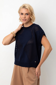 Джемпер со спущенным плечом ажурной вязки из итальянского хлопка. Умеренное переплетение, хлопок в составе придают изделию форму и ощущение комфорта во время носки. Незаменим в повседневном летнем гардеробе.