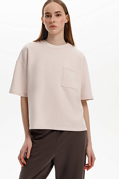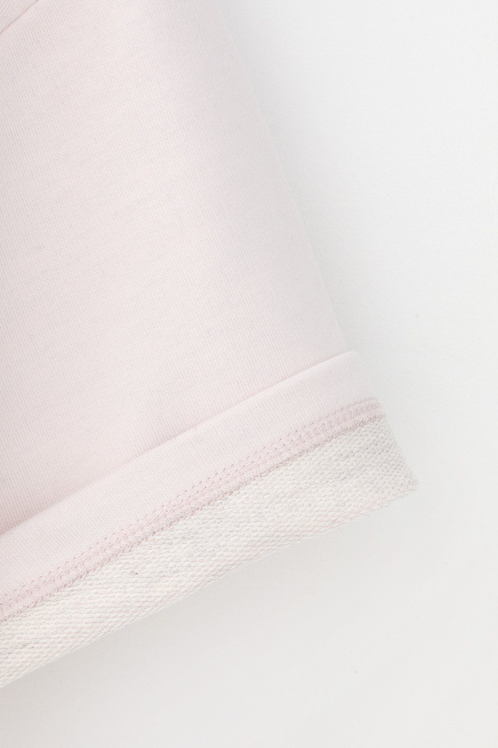 Футболка из мягкого двухцветного футера. Внутренняя сторона изделия представлена в натуральном цвете хлопка, внешняя в нежно-розовом. За счет использования крашенной пряжи, данный вид полотна прошел минимальную обработку, что придало изделию мягкость и шелковистость.
