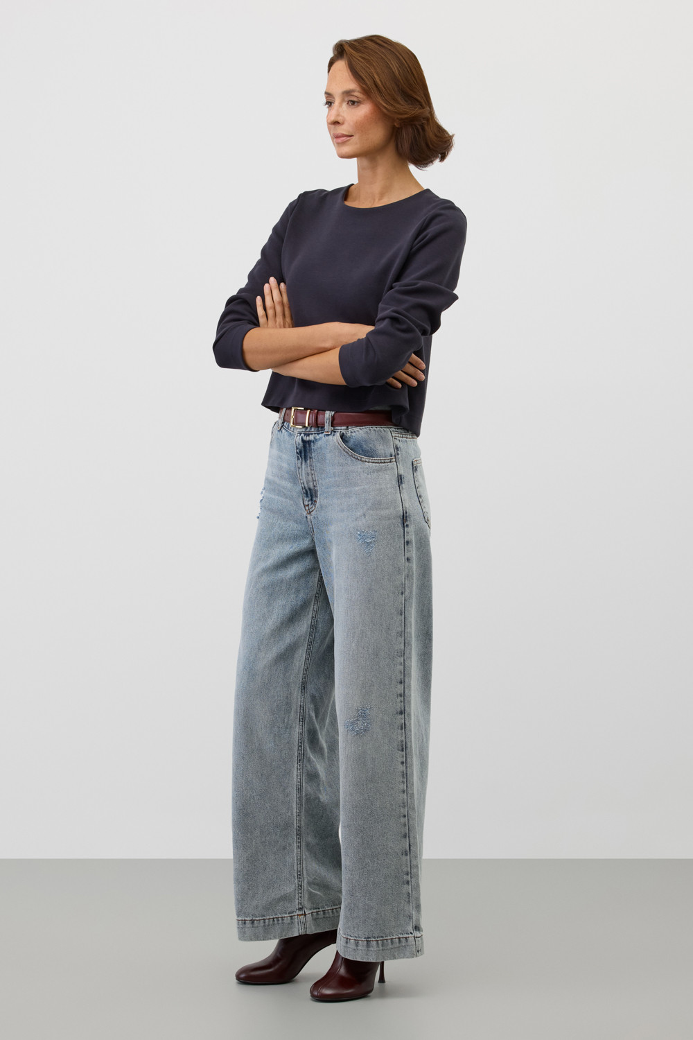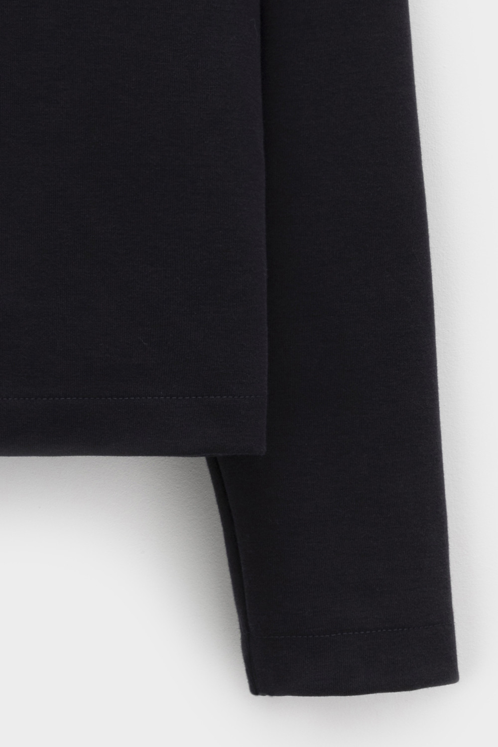 Укороченный лонгслив изготовлен из особого сочетания хлопка и полиэстера, что обеспечивает изделию мягкость, хорошую воздухопроницаемость и высокую прочность. Благодаря инновационному двойному плетению изделие отлично держит форму. Обработка ткани с использованием силикона добавляет ей легкости и дает приятную на ощупь шелковистую текстуру.