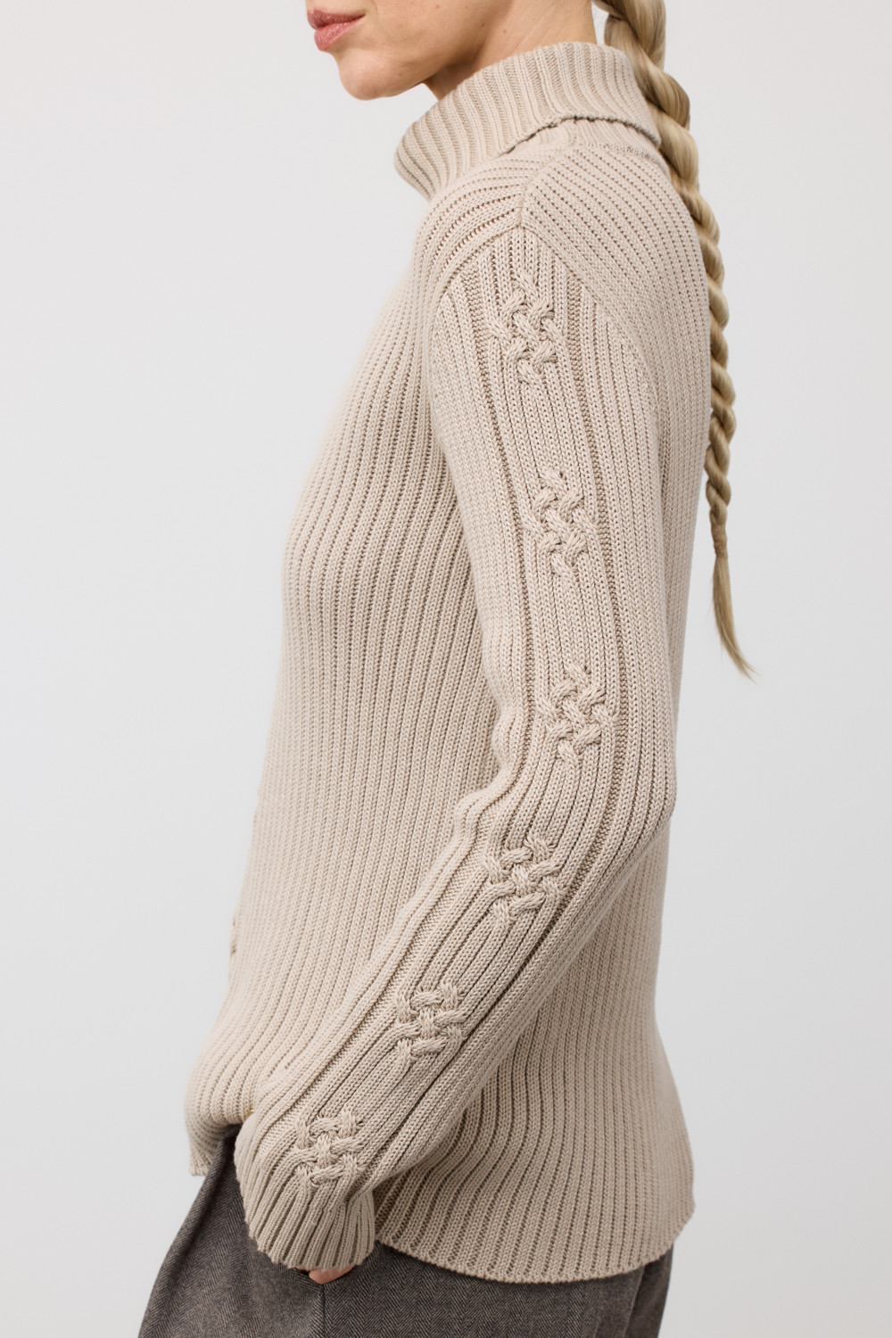 Хлопковый джемпер обеспечивает идеальную посадку, стойкость к деформациям и сохранение цвета. Включение дышащего хлопка в состав гарантирует натуральность, мягкость и бережное отношение к коже.