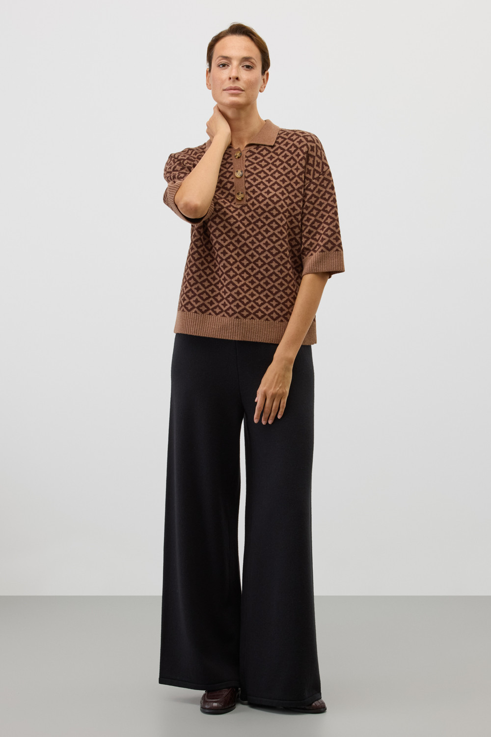 Элегантное поло в кантри-стиле, изготовленное из высококачественной пряжи с применением передовой технологии смешанных волокон. Изысканное сочетание шерсти и акрила создает непревзойденный комфорт: модель деликатно подчеркивает силуэт, обеспечивает нежное прикосновение к коже и сохраняет безупречный внешний вид.