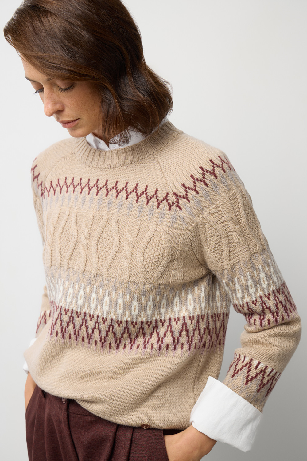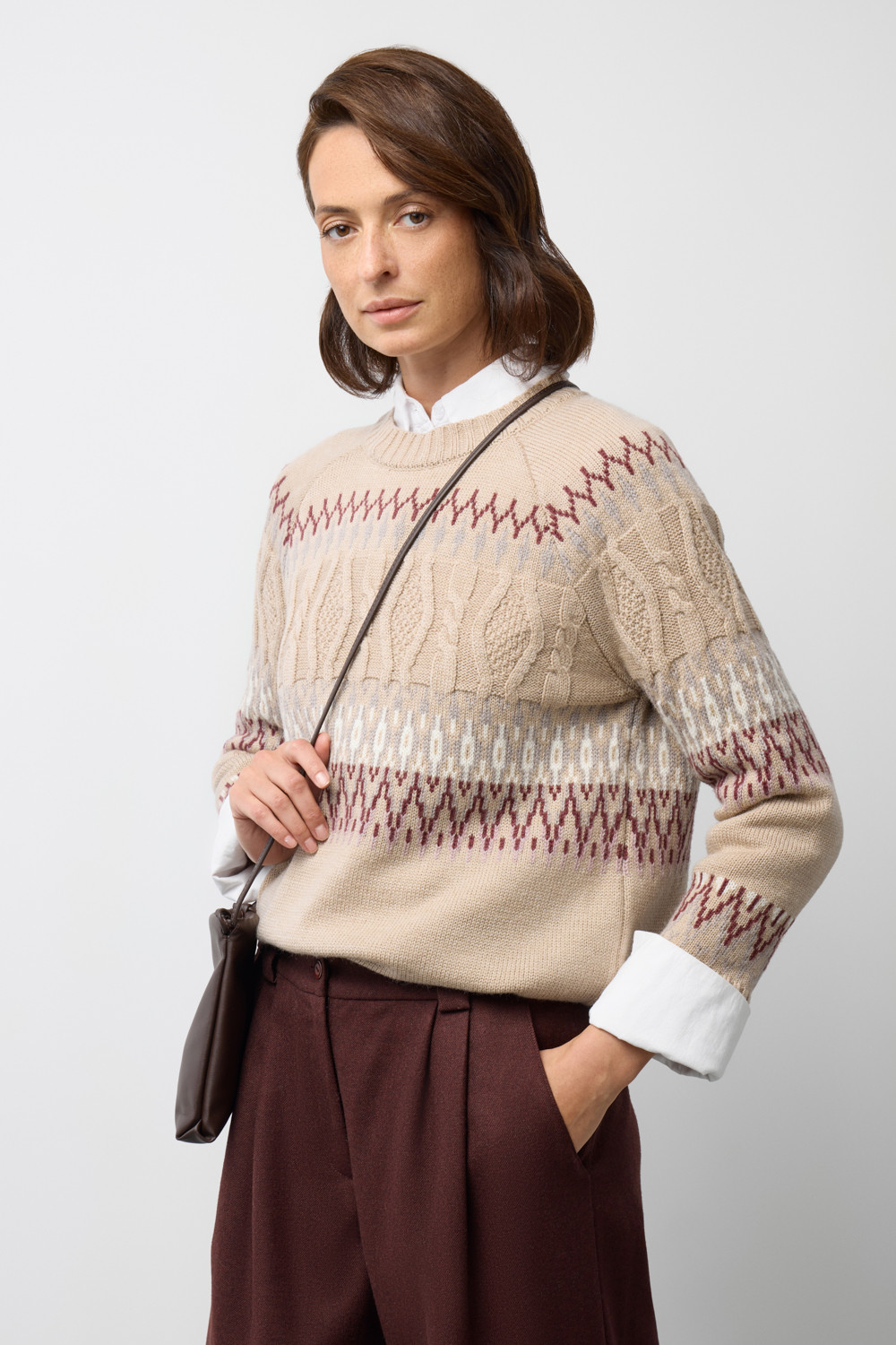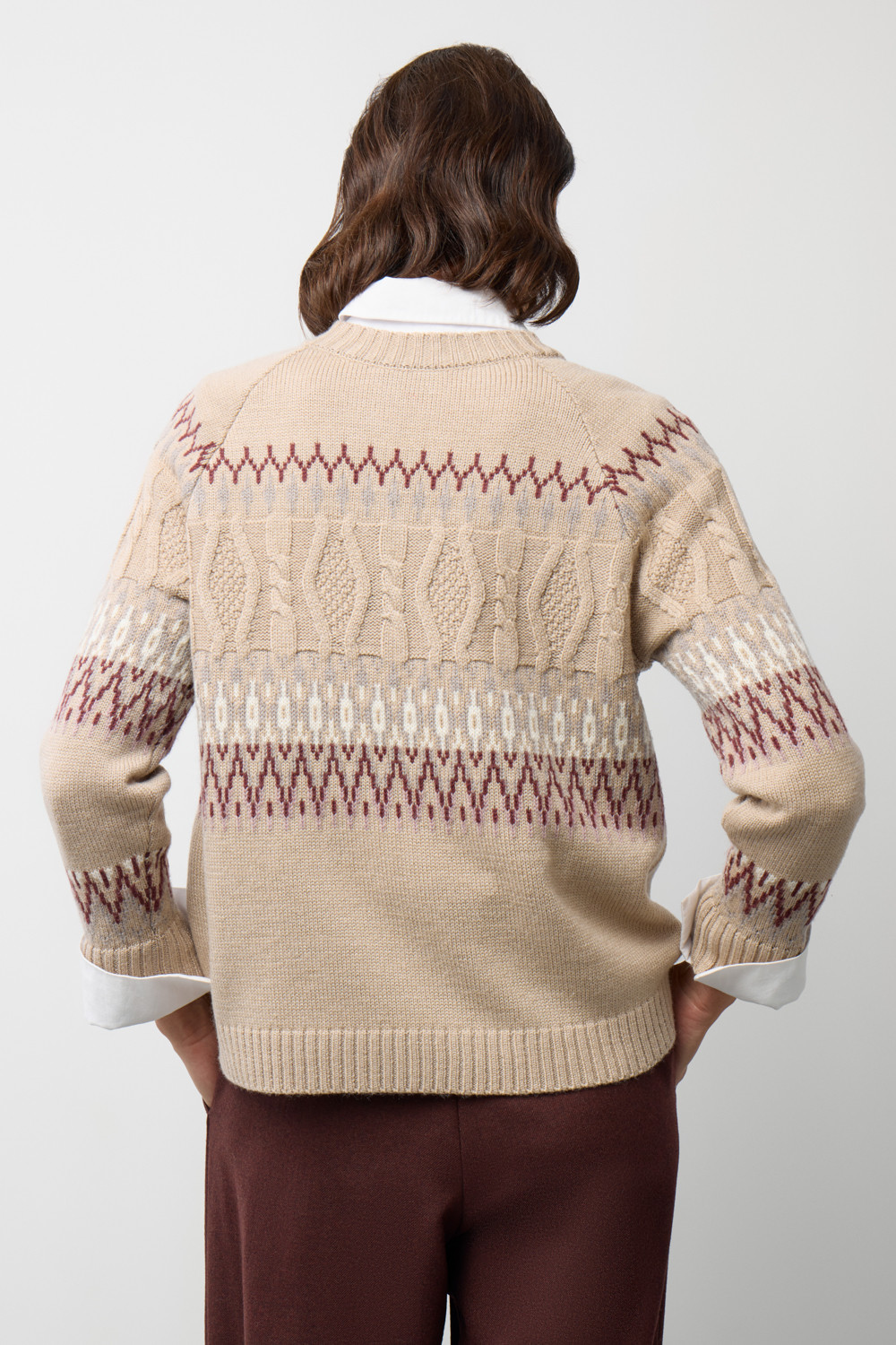 Мягкий джемпер в скандинаском стиле из премиальной пряжи, созданный с использованием инновационной технологии смешанного волокна. Деликатное сочетание шерсти и акрила обеспечивает непревзойденный комфорт: изделие нежно облегает фигуру, гарантирует мягкость прикосновения и сохраняет безупречную форму.