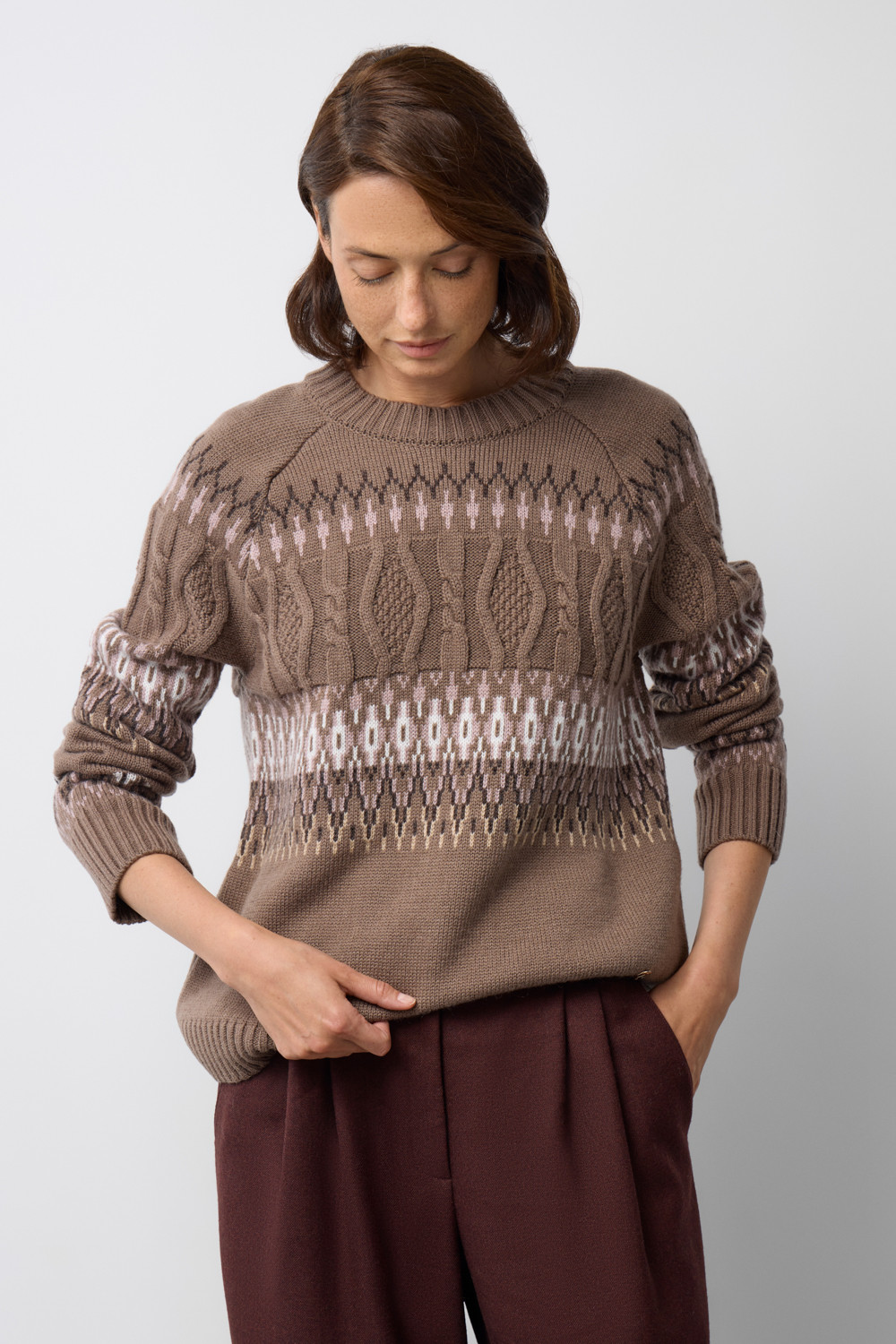 Мягкий джемпер в скандинаском стиле из премиальной пряжи, созданный с использованием инновационной технологии смешанного волокна. Деликатное сочетание шерсти и акрила обеспечивает непревзойденный комфорт: изделие нежно облегает фигуру, гарантирует мягкость прикосновения и сохраняет безупречную форму.
