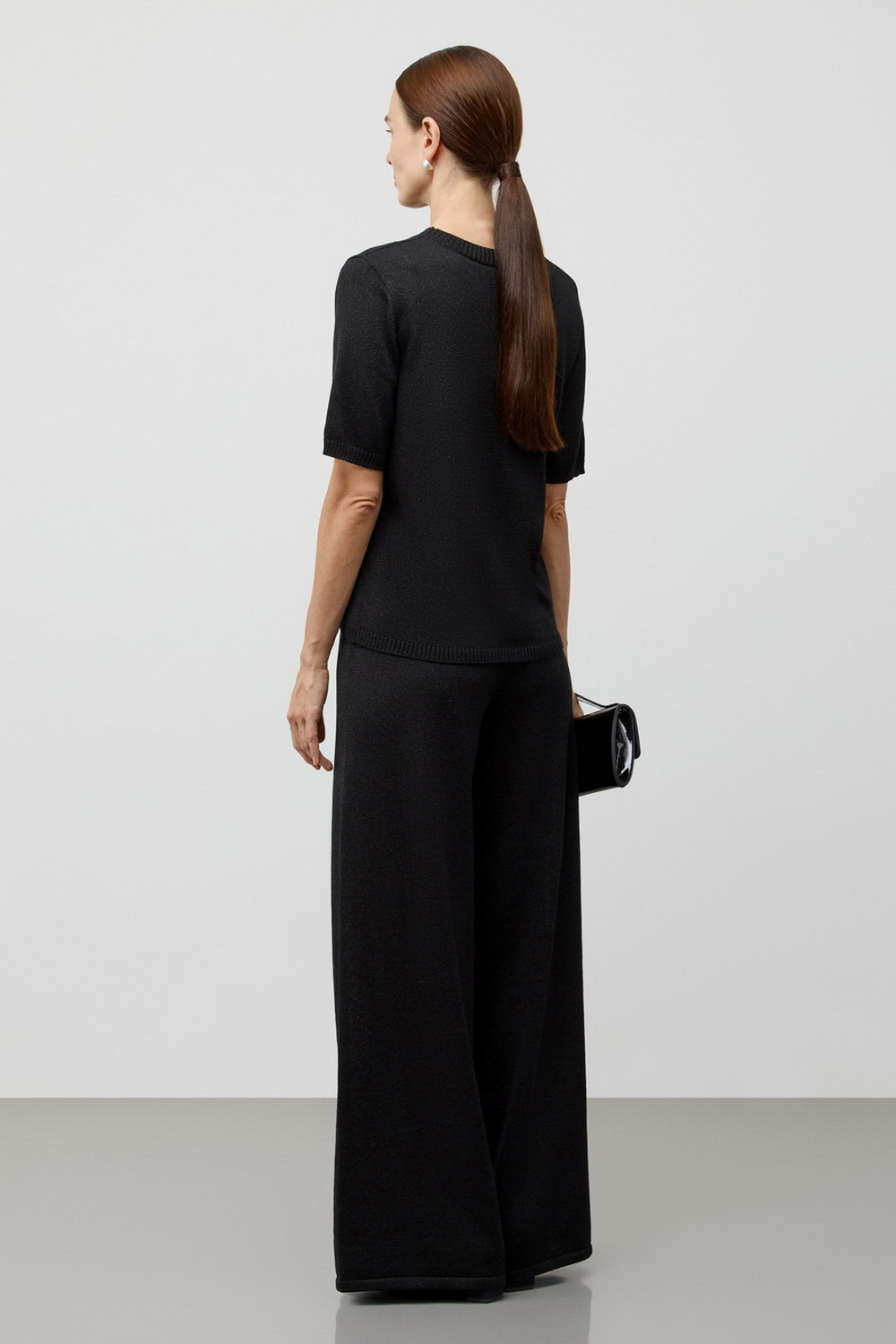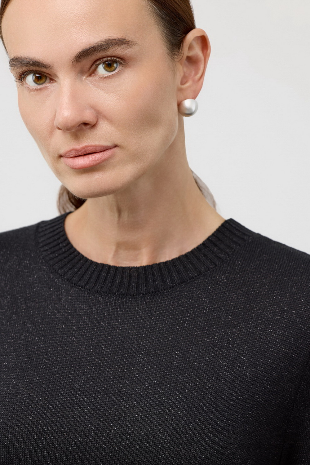 Благодаря высокому уровню вискозы джемпер приятно охлаждает кожу и создает ощущение мягкости. Уникальное добавление метанита придает ткани изысканный мерцающий эффект, который тонко подчеркивает вашу индивидуальность. Этот джемпер идеально подходит для создания как повседневных, так и вечерних образов.
