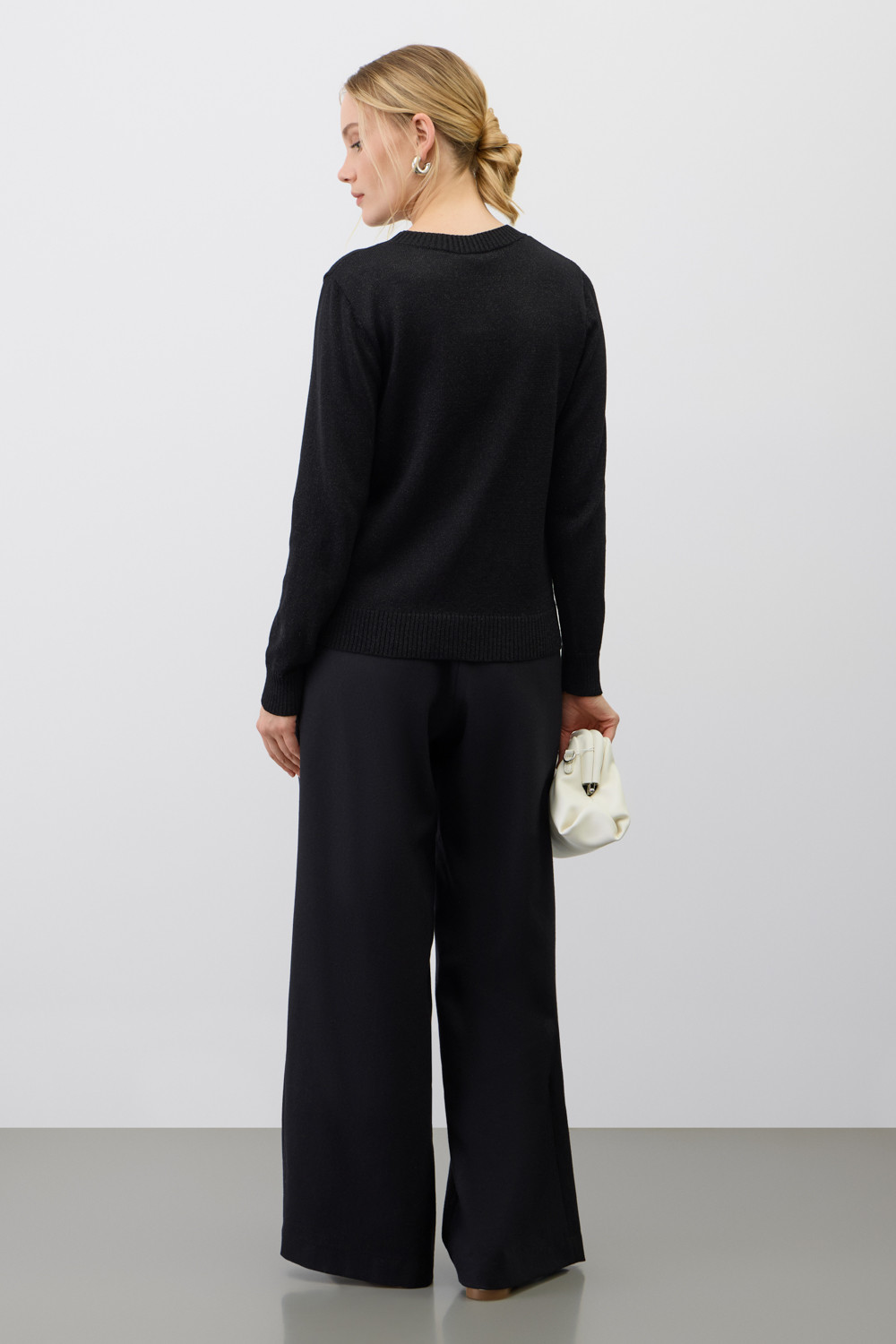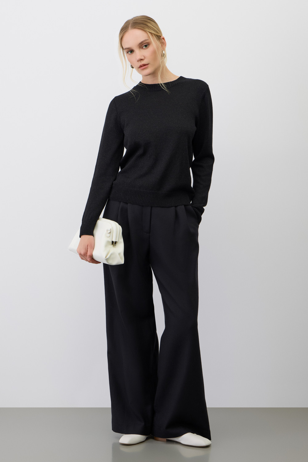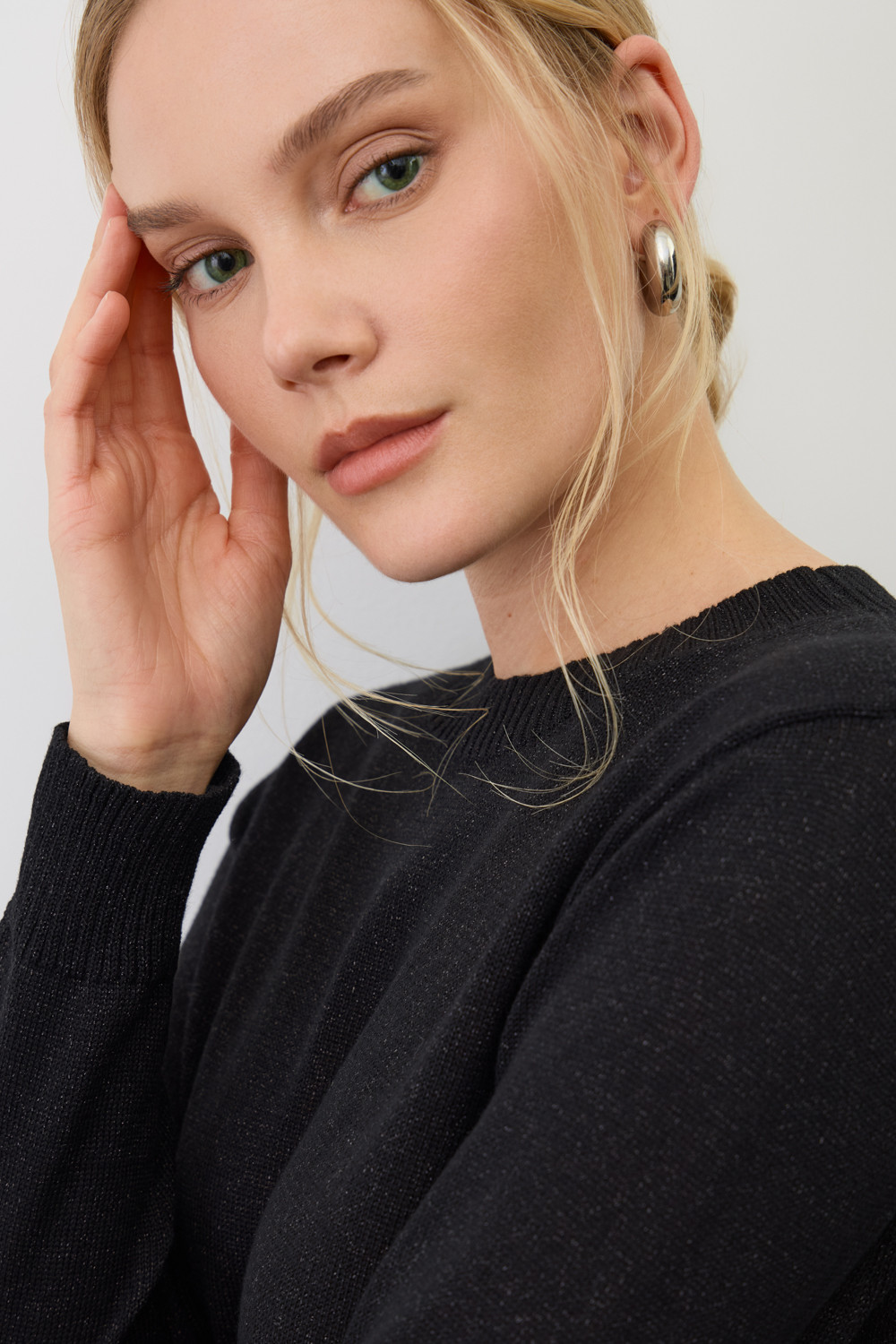 Благодаря высокому уровню вискозы джемпер приятно охлаждает кожу и создает ощущение мягкости. Уникальное добавление метанита придает ткани изысканный мерцающий эффект, который тонко подчеркивает вашу индивидуальность. Этот джемпер идеально подходит для создания как повседневных, так и вечерних образов.