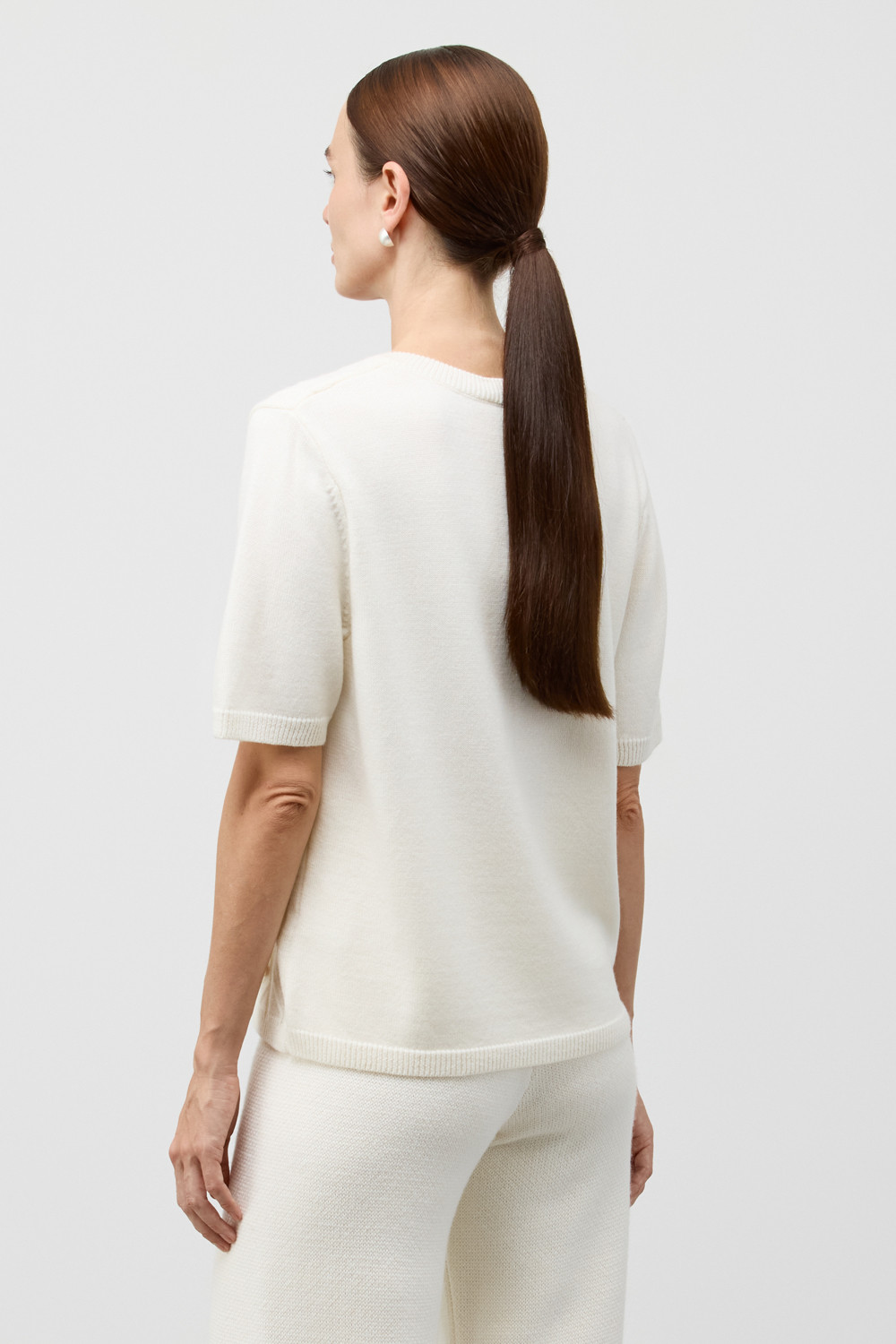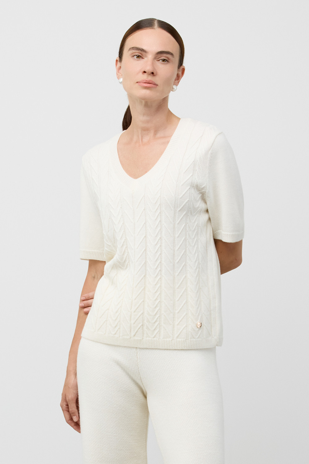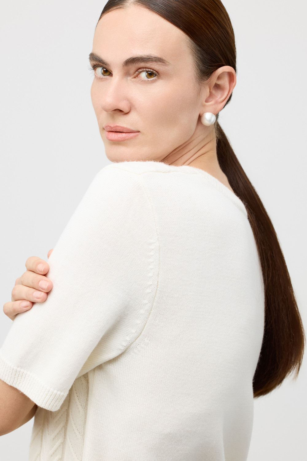 Короткий рукав и рельефная текстура придают джемперу современный вид, идеально сочетающийся с различными стилями одежды.